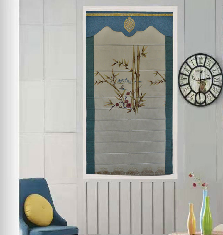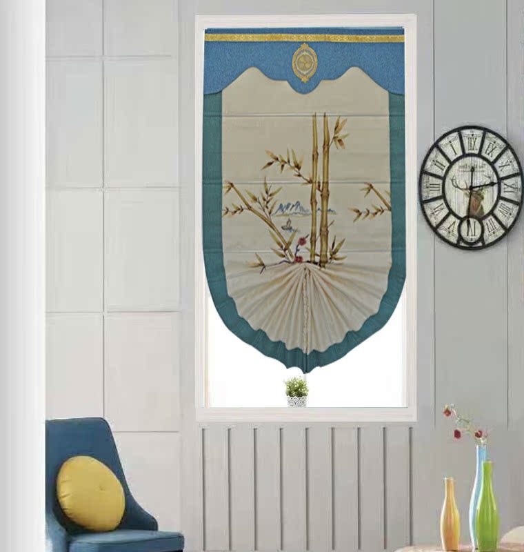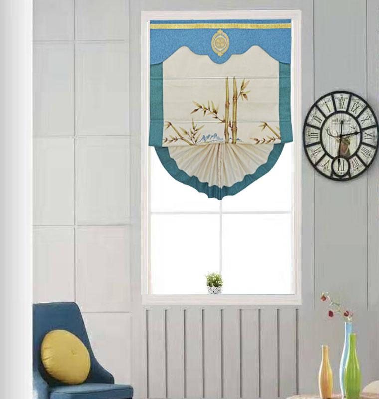 Roman curtain curtain fan-shaped Nordic simple master bedroom curtain Warm bedroom Bamboo girl louver free hole