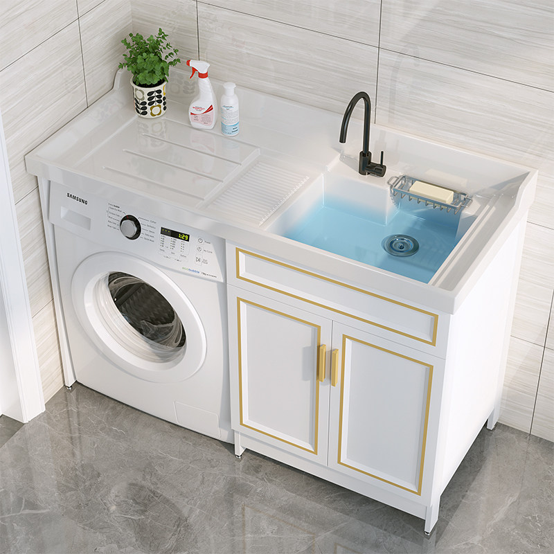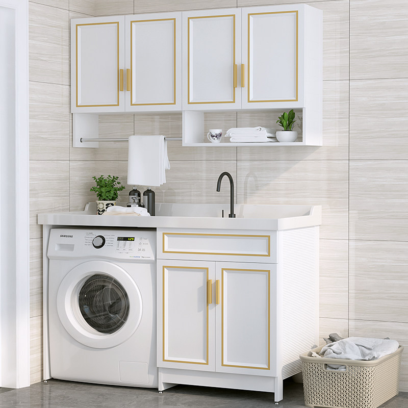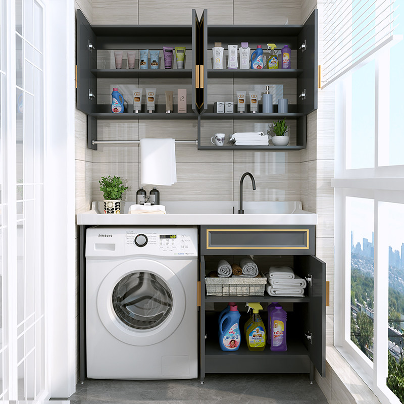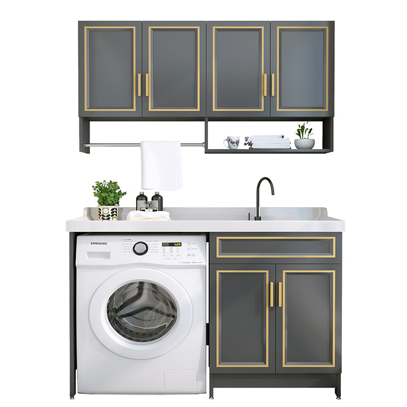 Space aluminum balcony washing machine cabinet Custom corner-cut laundry basin with pallet basin cabinet Combination machine laundry cabinet companion