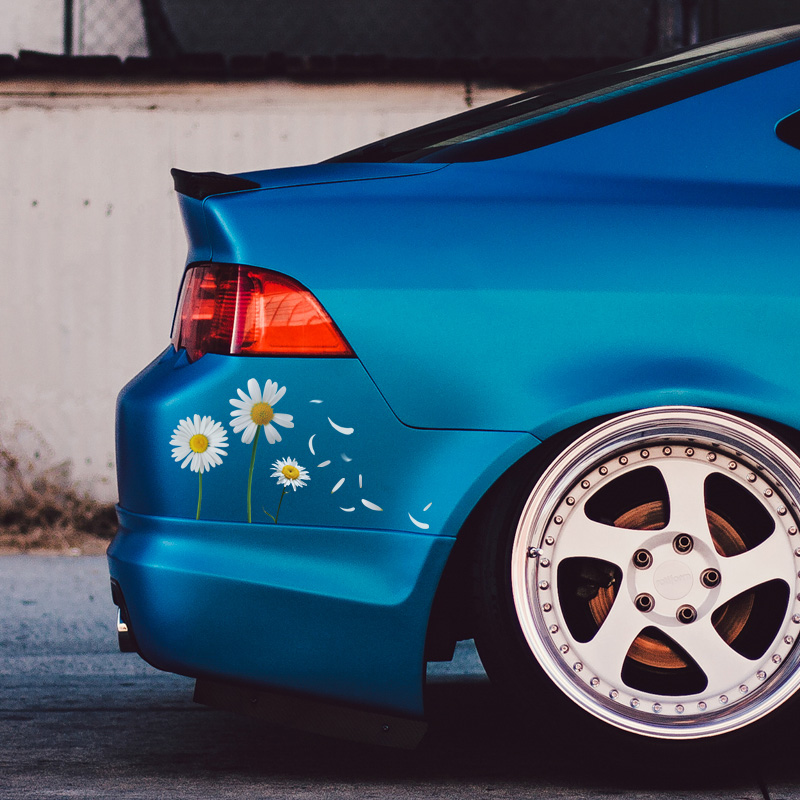 Car personality Chrysanthemum Car Sticker Daisy Cute Fun Decorative Sticker Body Scratchshield Tail Casual Stickers