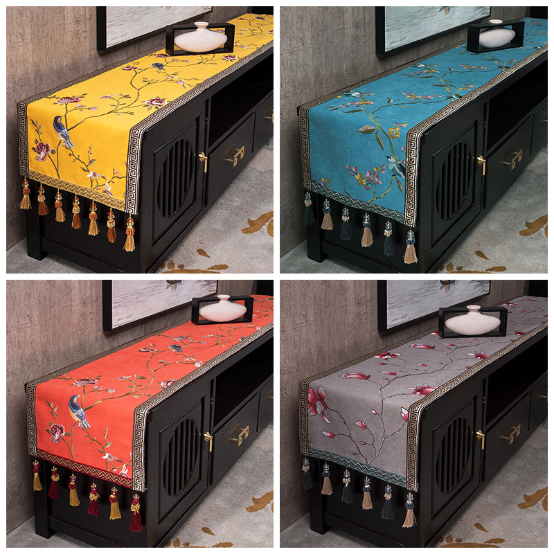 New Chinese TV cabinet table cloth cover cloth cover tea table cloth table cloth table shoes cabinet Chinese wind strip table flag table mat