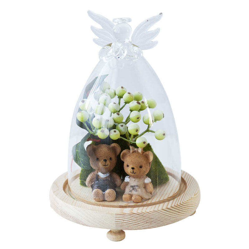Cartoon Styling Small Bear Glass Angel Hood Furnishing Pieces Children's Holiday Gift Room Furnishing of Children's Genuine Interest Wood