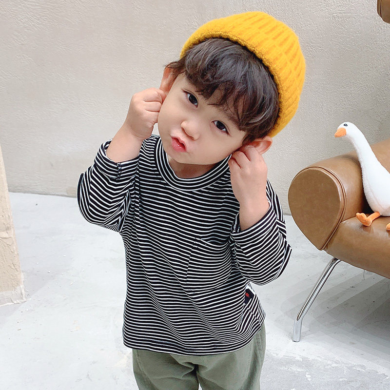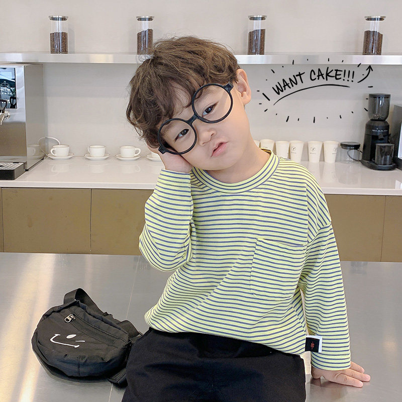 Children's T shirts spring and autumn 2021 new striped baby long-sleeved top children bottom shirt boys Western Korean version