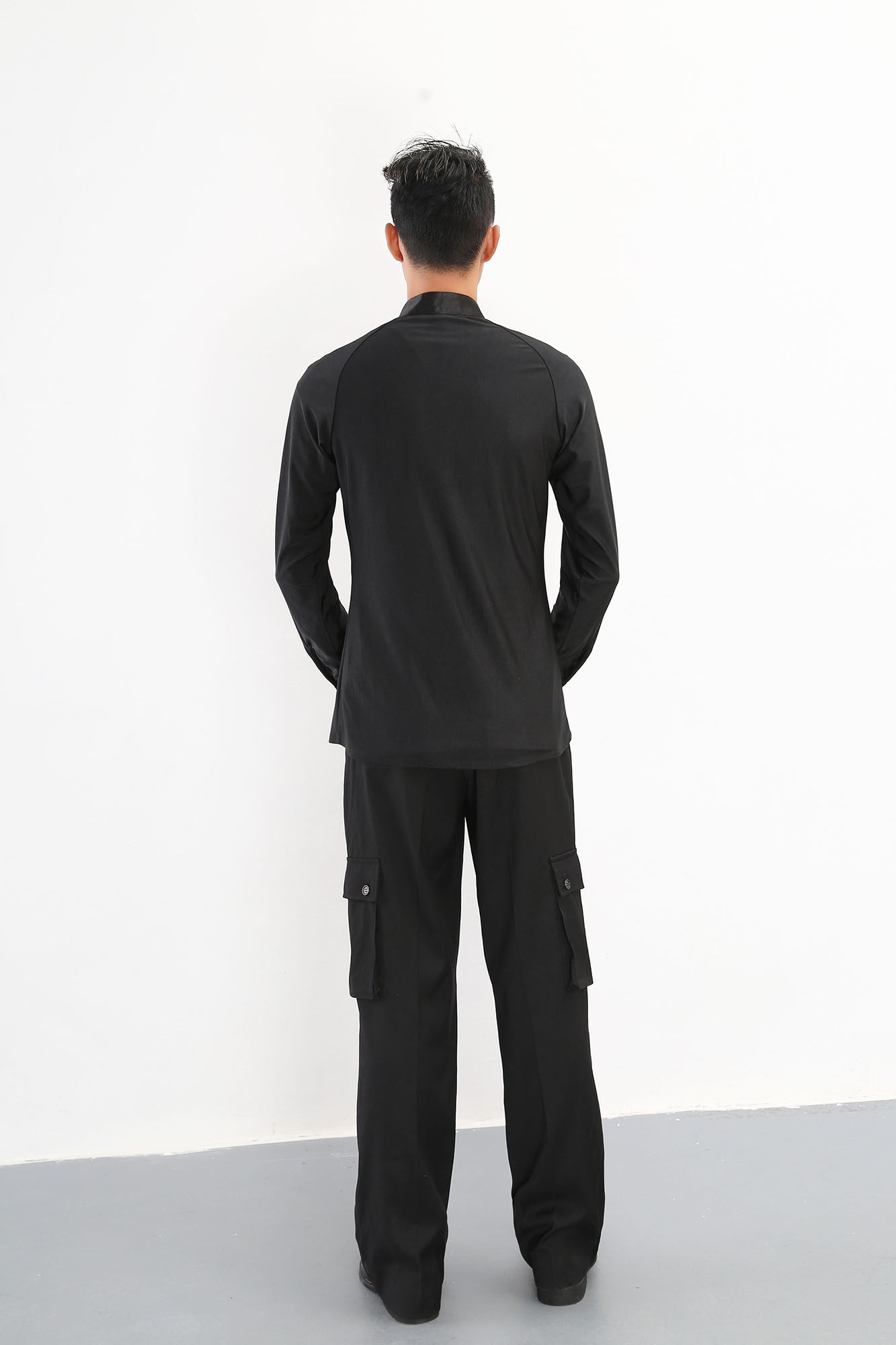 Male Latin dance, modern dance, square dance costume, social dance, national standard dance costume, dance costume, long-sleeved dance costume, stand-up collar shirt