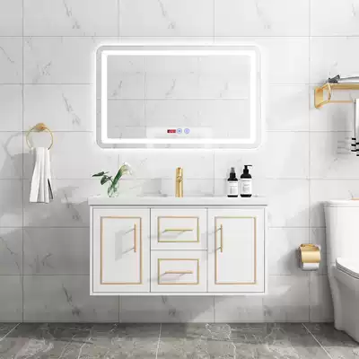 Light luxury smart mirror bathroom cabinet Modern minimalist bath cabinet Nordic solid wood washstand hand washbasin cabinet combination