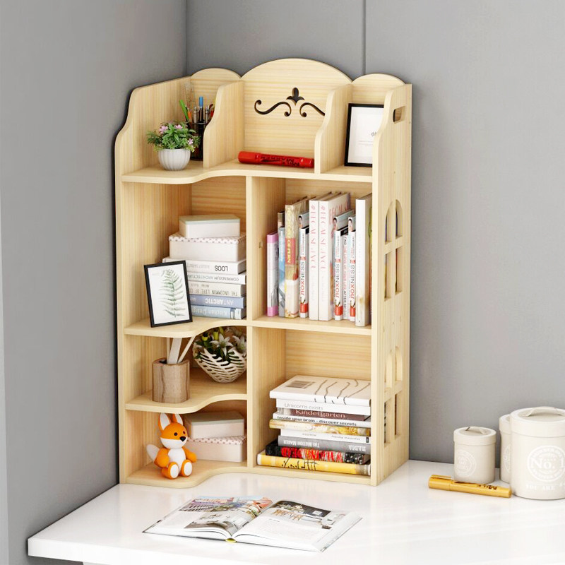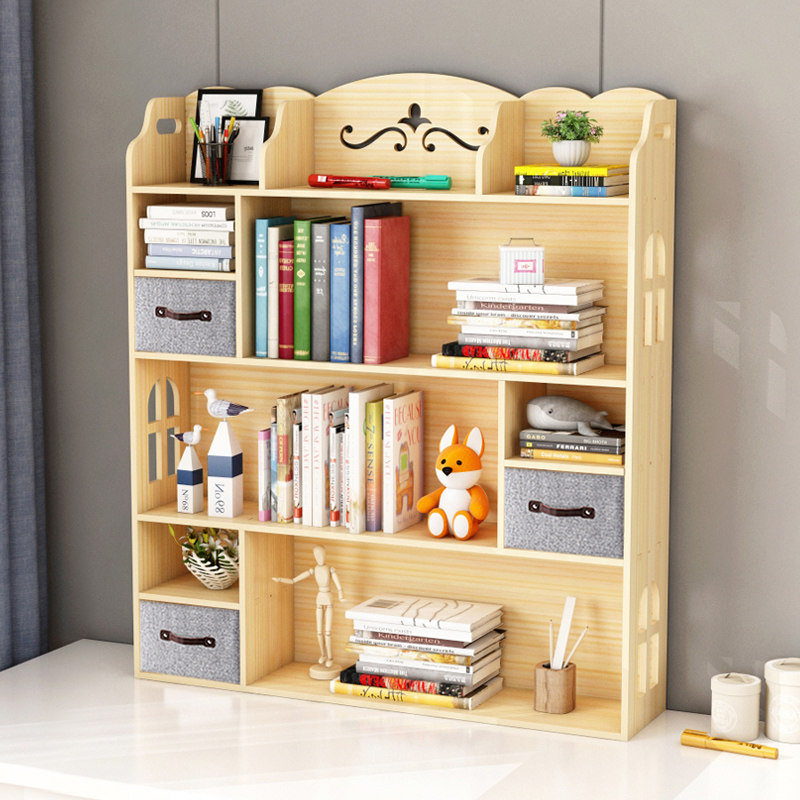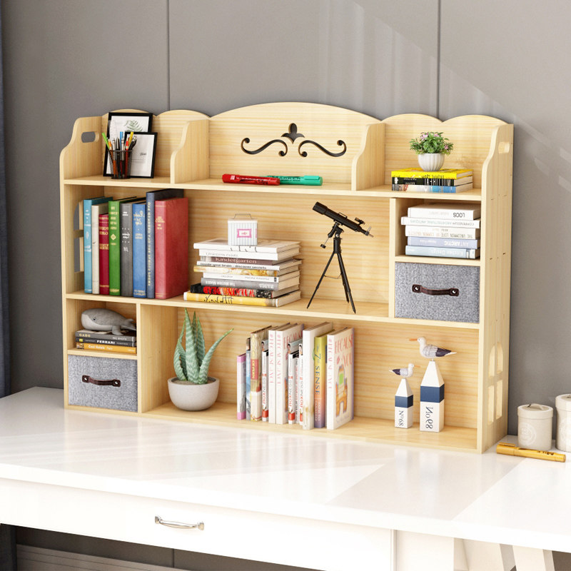 Small bookshelf on solid wood table Simple office desktop shelf Children's student desk Bookcase Bay window storage shelf