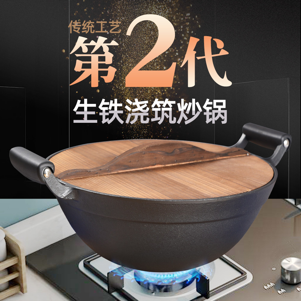 Export quality 28cm cast iron pan old raw iron pan double ear large frying pan gas stove domestic frying pan
