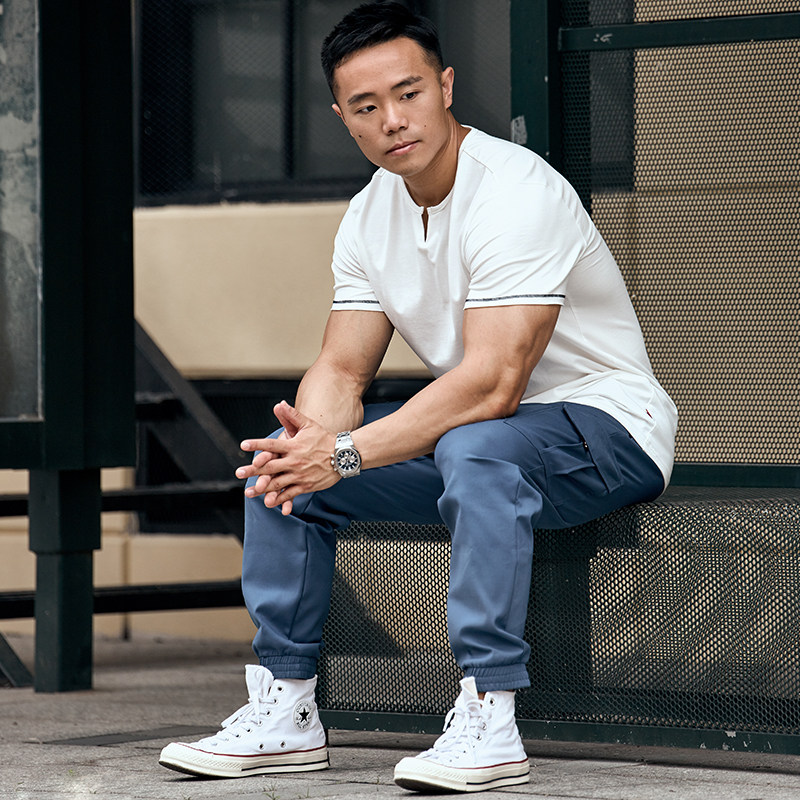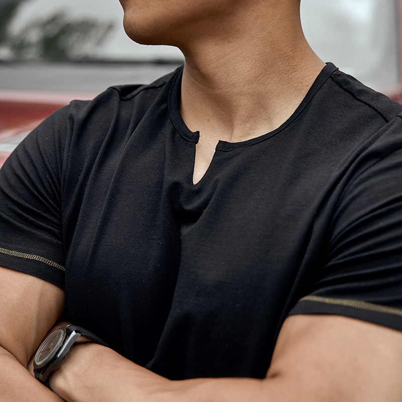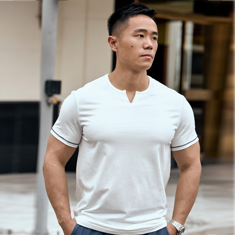 AlphaGym Small V Collar Man Short Sleeve Summer Crash Color Comfort Breathable Cotton Quality Fitness Sports Pure Color Tee