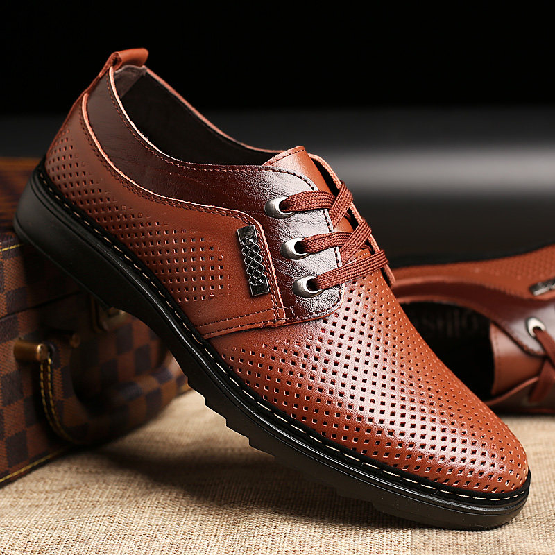 Men's shoes casual men's shoes summer hollow breathable new British tide sandals spring and autumn leather flat shoes men