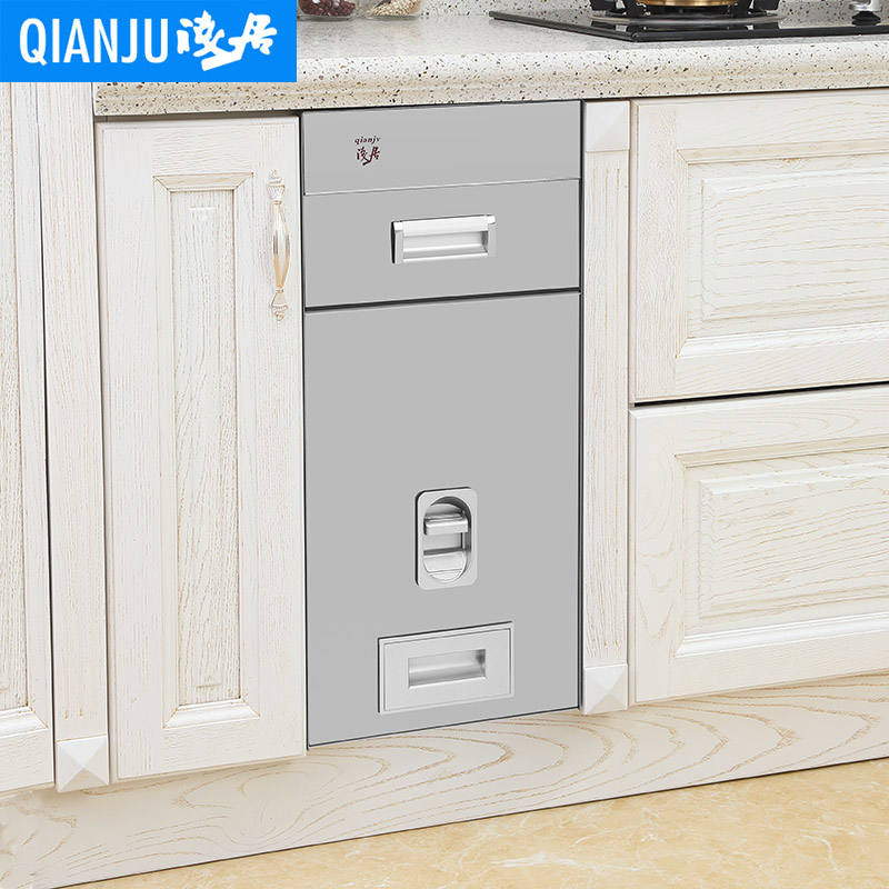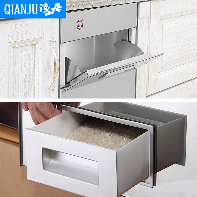 Shallow built-in rice box 304 stainless steel kitchen cabinet rice bucket rice cabinet pull basket home automatic insect and moisture-proof
