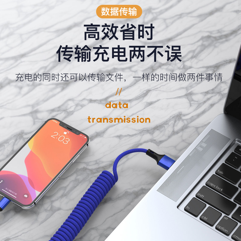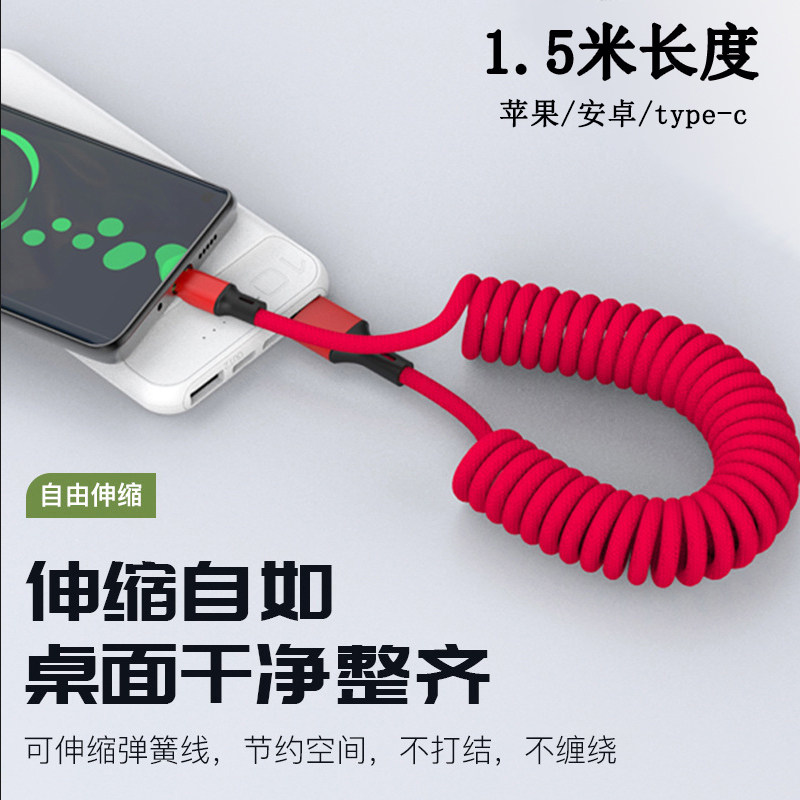 Fast-charging data line 5A Applicable to Apple Android Huawei spring Xiaomi vivo telescopic 1 5m Shrink Oppo On-board