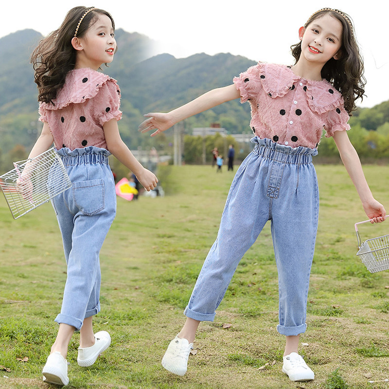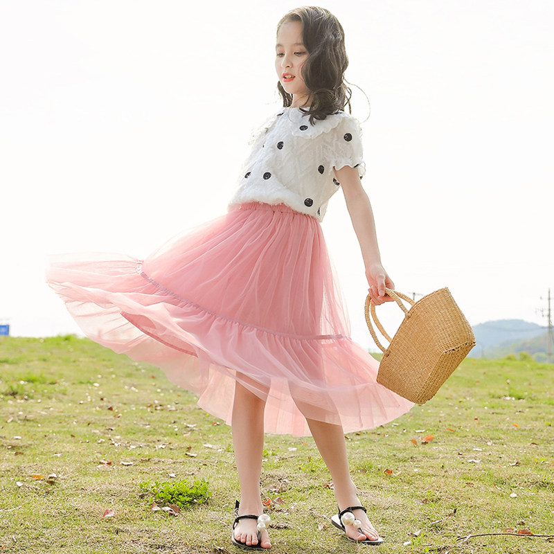Korean girls summer dress 2022 new style big boy summer fashionable short-sleeved suit skirt two-piece set