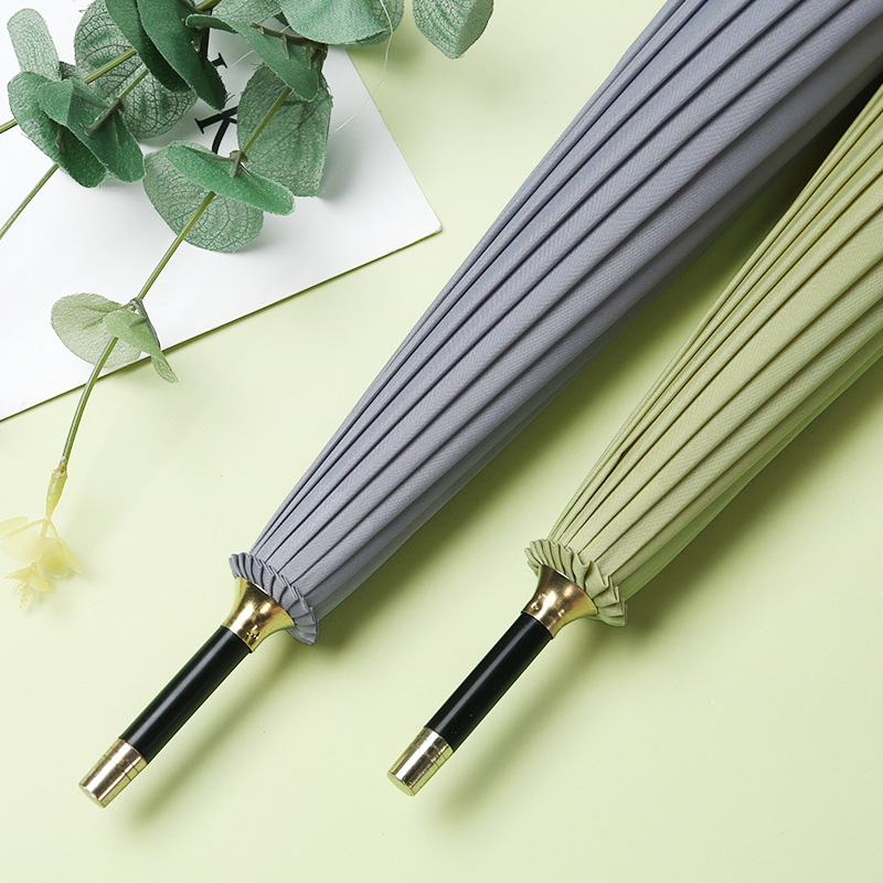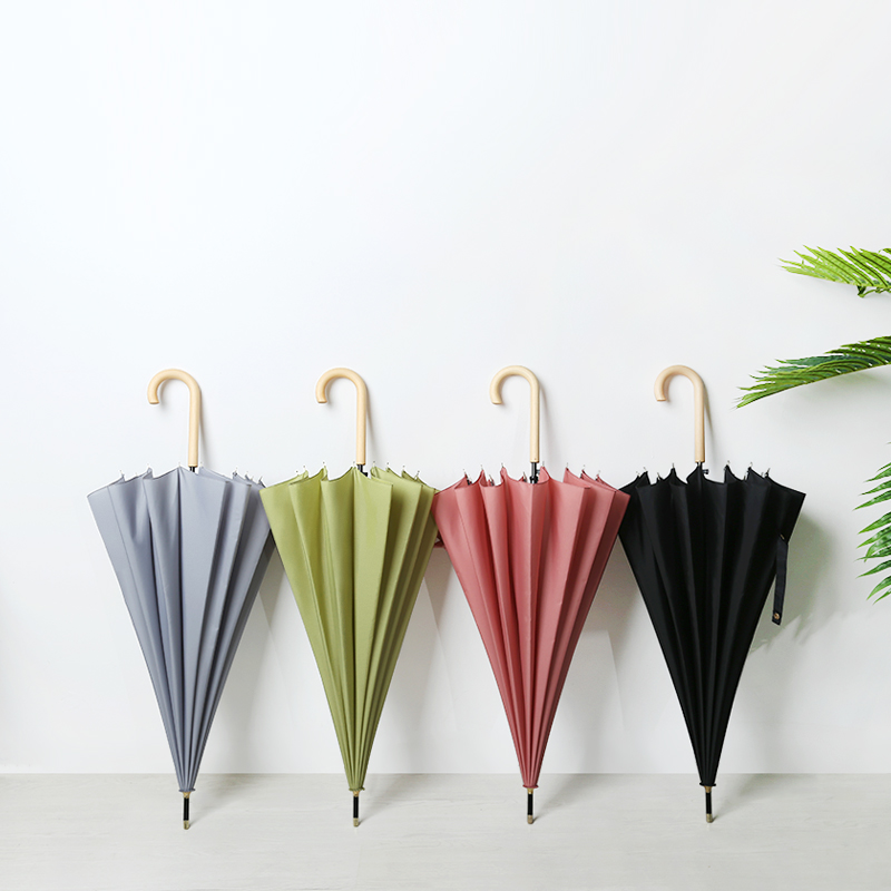 16 Bone Small Fresh Umbrella Wood Handle Straight Umbrella Japan long handle Double clear and rain Dual umbrella Rain S umbrella pure colour long handle umbrella