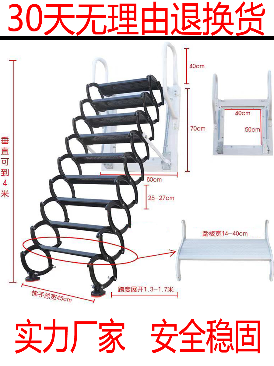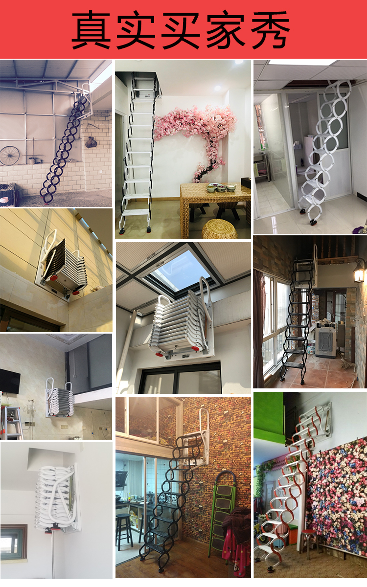 Attic telescopic stair handrail home custom lift indoor and outdoor invisible electric folding wall-mounted stretch ladder