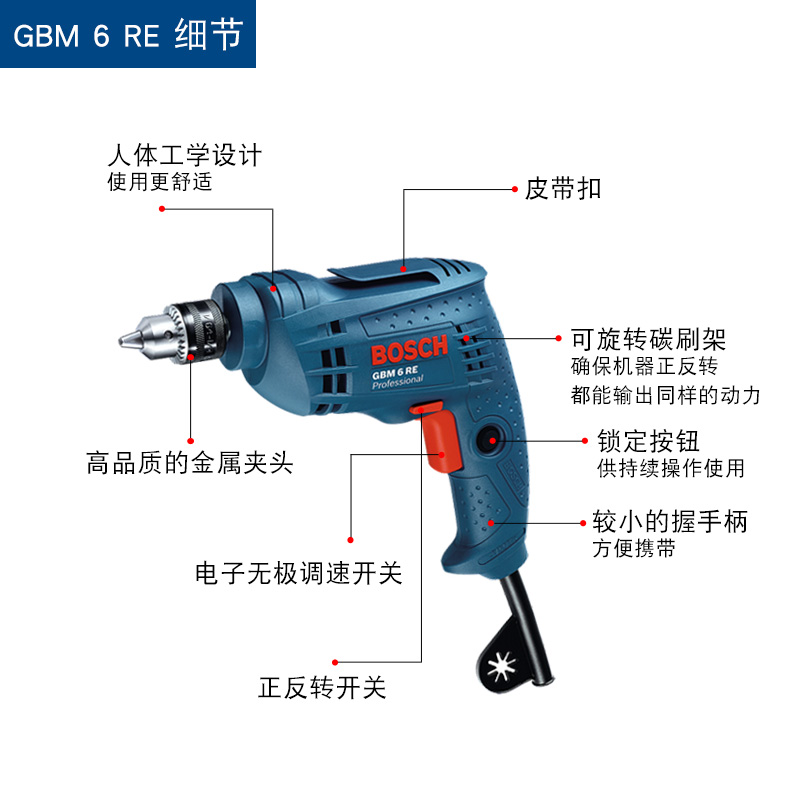 BOSCH Bosch Multifunction High Speed Electric Drill GBM6RE Flipside Throttle 6 5mm Industrial Grade Small Electric Drill