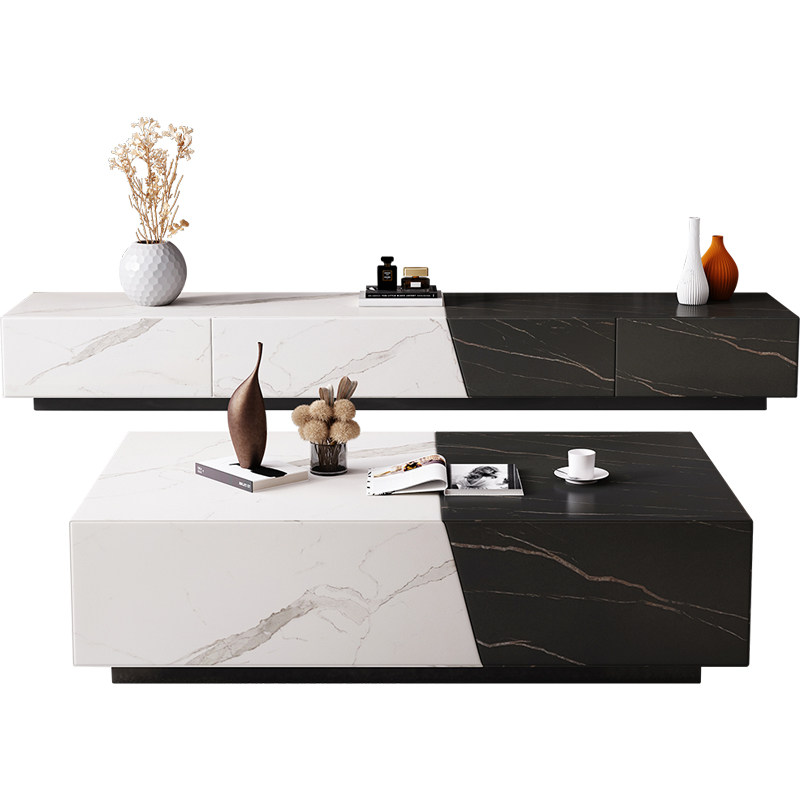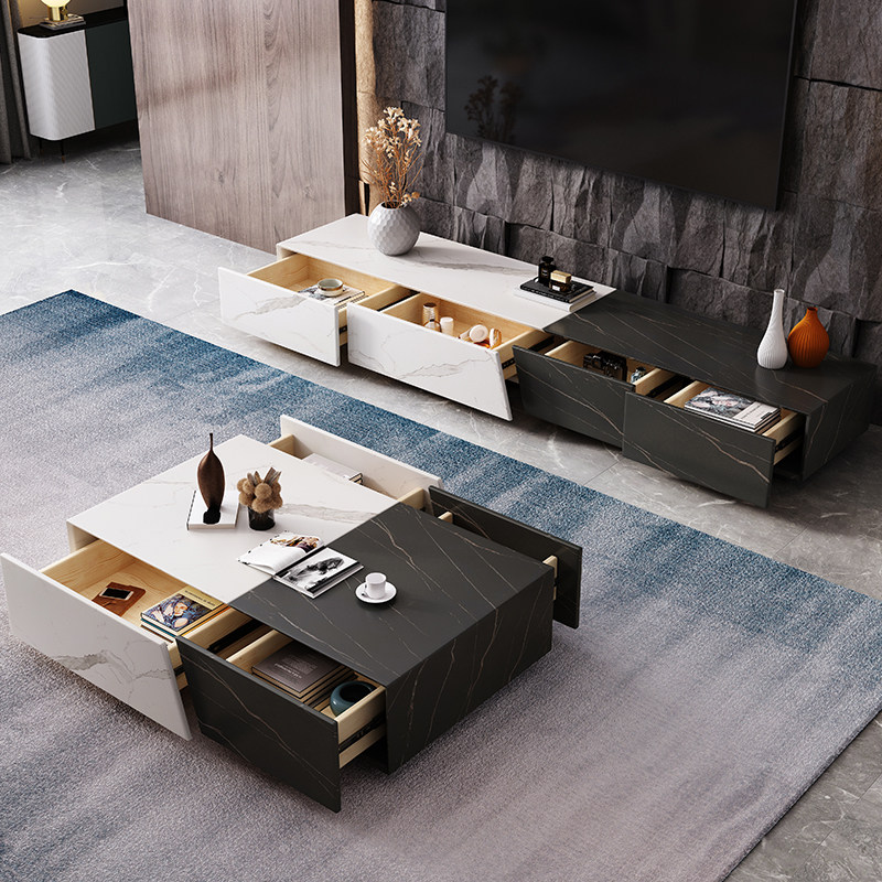 Post-modern minimalist light luxury Italian imported slate marble TV cabinet living room Nordic storage designer floor cabinet