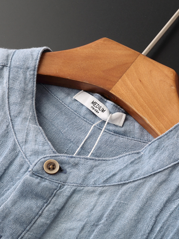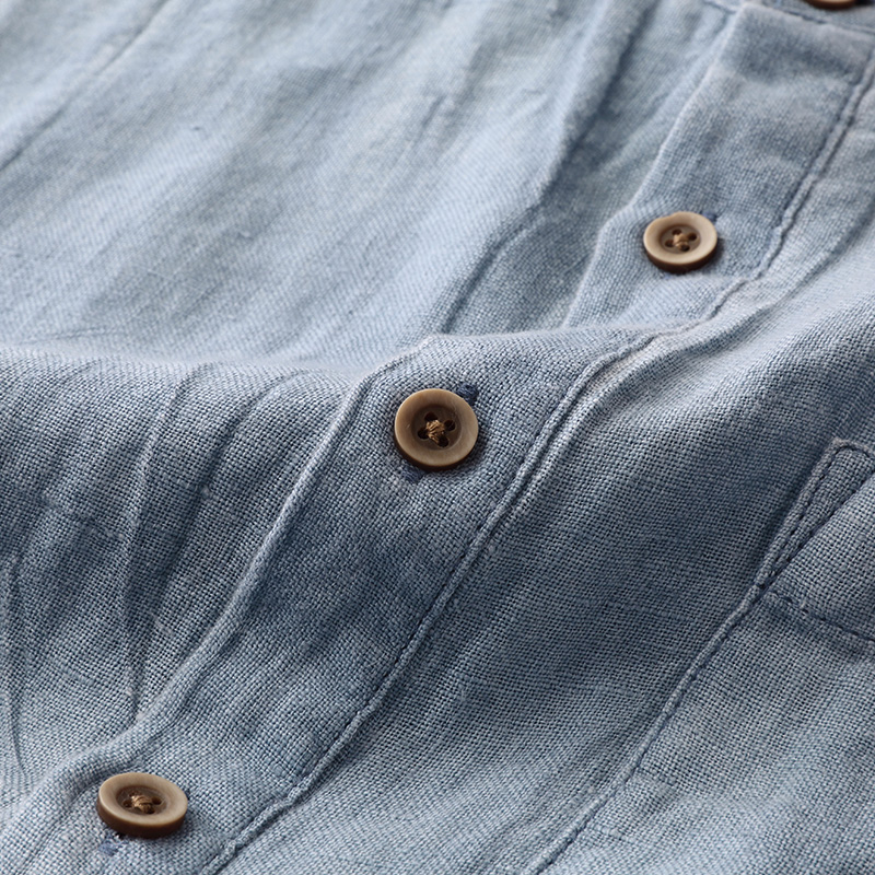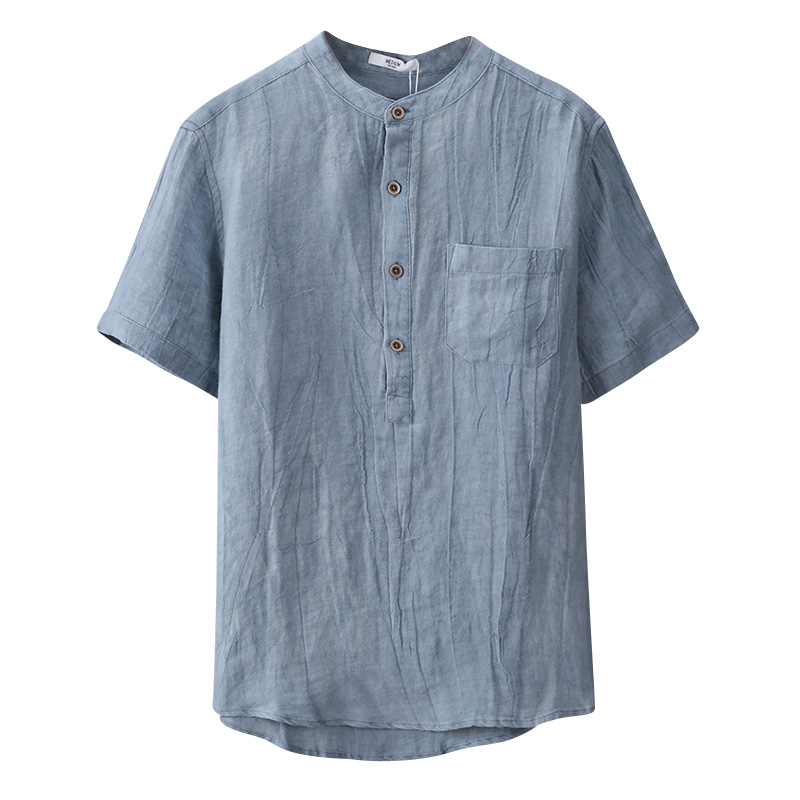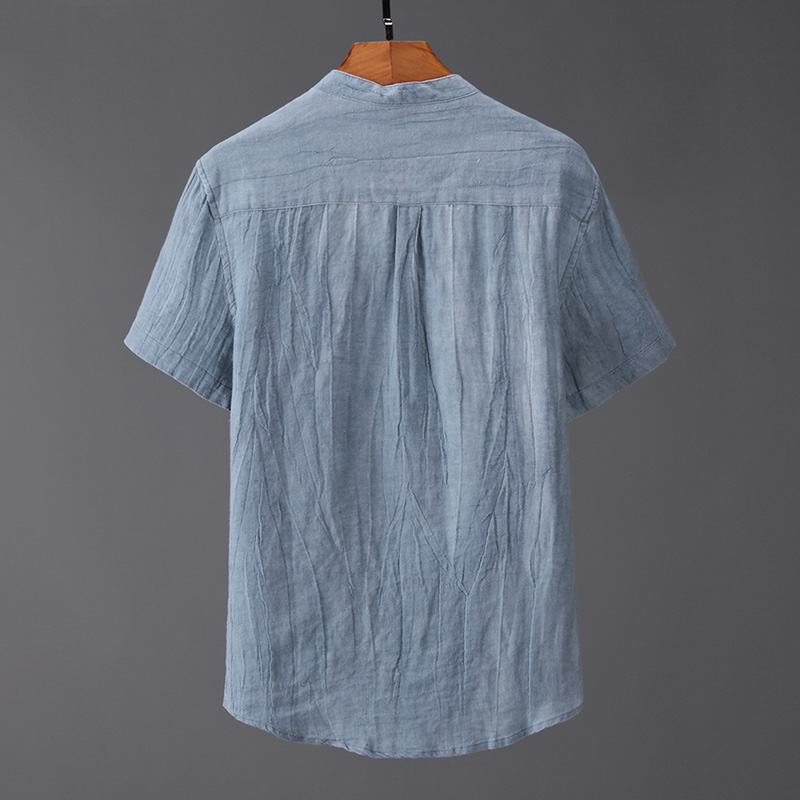 Day of vintage retro crimson for old lap pure linen short sleeves Men's shirt trendy casual hemp cloth shirt E