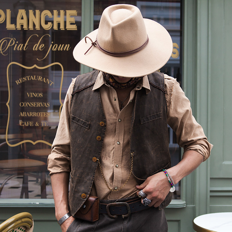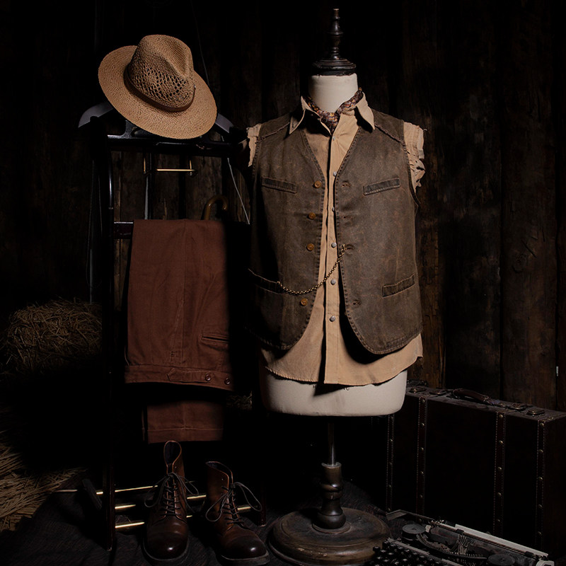 SOARIN American retro leather vest male Ami khaki multi-pocket casual slim small vest suit vest