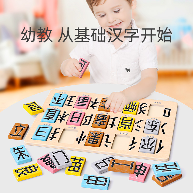 Wooden domino building blocks children's puzzle 3-4 years old 6-year-old Chinese character early education intelligence brain toy boys and girls