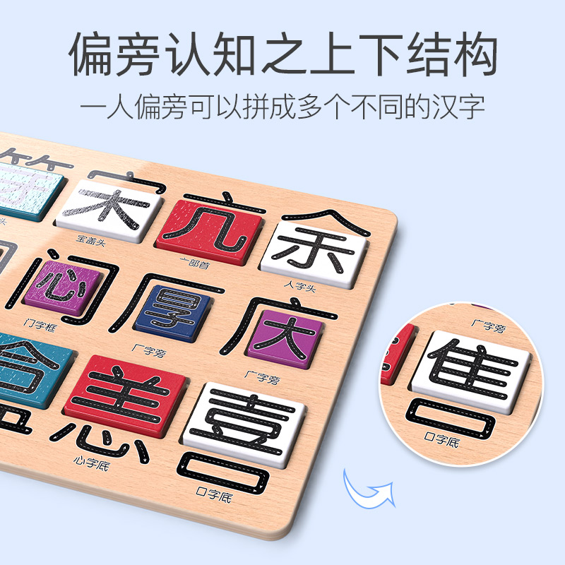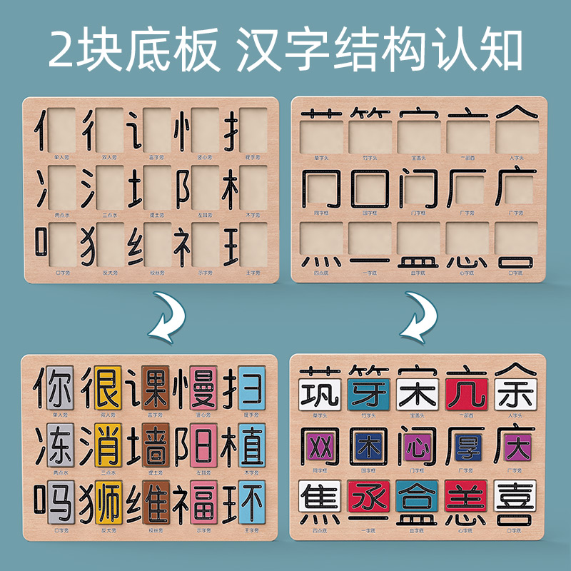 Preschool Chinese Domino (100 double-sided building blocks plus 2 operation boards) (thousands of Chinese characters can be grouped)