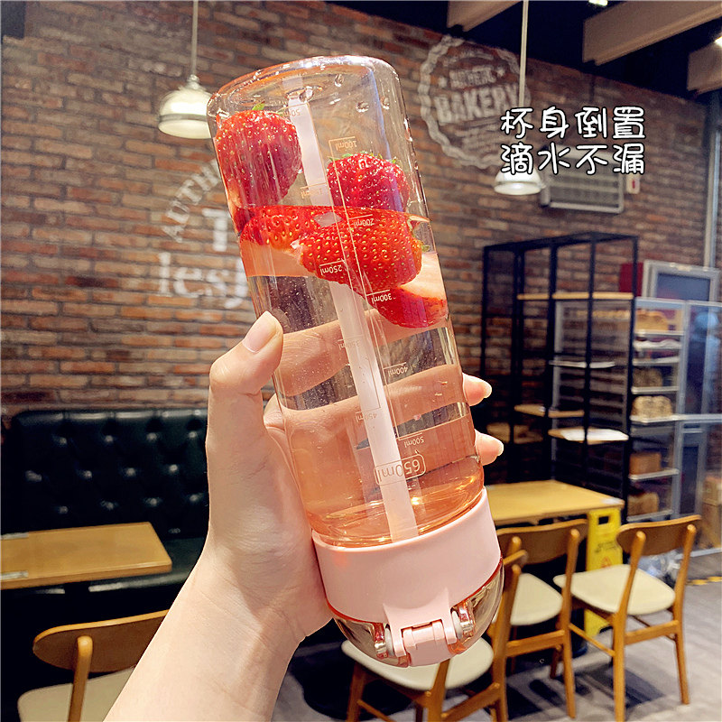 Summer large-capacity plastic cup female students with graduated straw drinking cup couple sports fitness portable