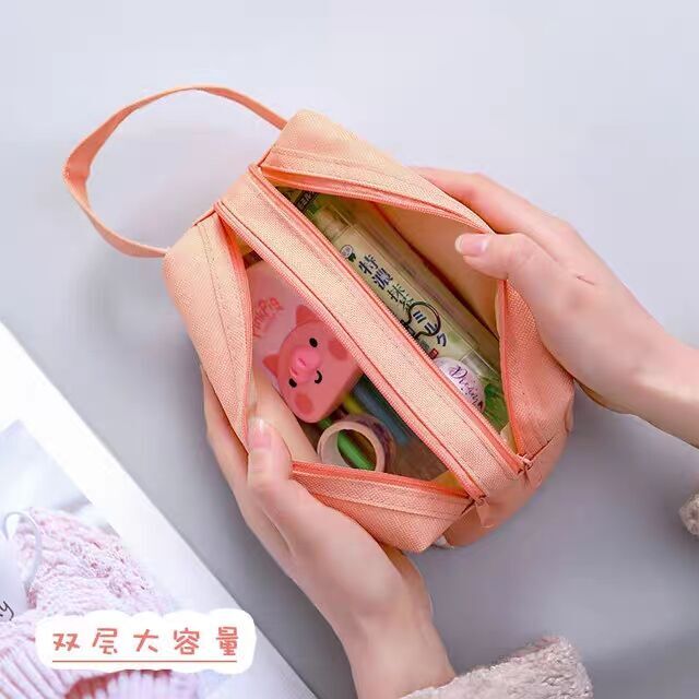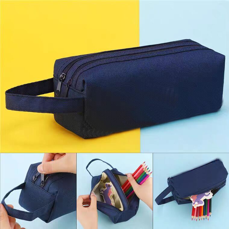 Pencil bag customized canvas pencil bag student pencil box stationery box creative promotional product double zipper
