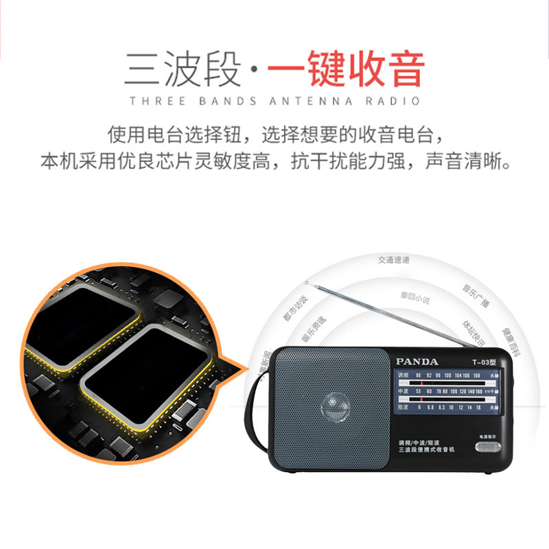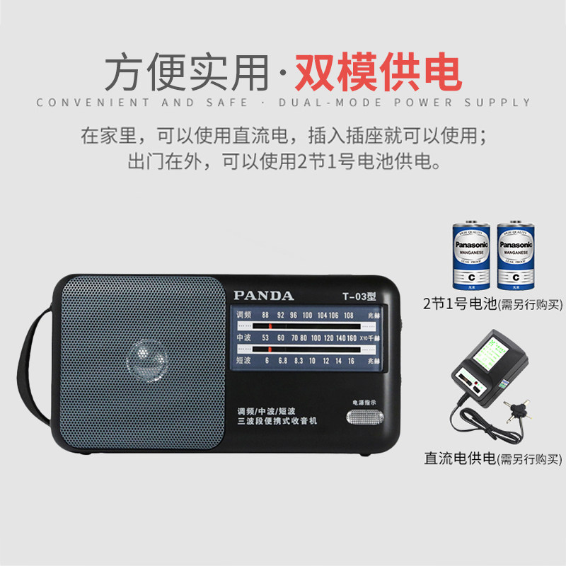 Panda T-03 dry battery radio for the elderly full-band small portable simple semiconductor full-band elderly dedicated new mini FM shortwave retro old-fashioned nostalgic radio