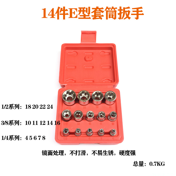 Single E-type lengthening E8MM single E-type lengthening 10MM single E-type lengthening 11MM single E-type lengthening 12MM single E-type lengthening 14MM single E-type lengthening 16MM single E-type extension 18MM single E-type lengthening 20MM single E-type lengthening 22MM single E-type lengthening 24MM10 pieces set E-type lengthening sleeve 14 pieces E-type short socket large, medium and small flying universal ratchet wrench single e-type wrench E6-E8 single E-type wrench E10-E12 single E-type wrench E14-E18 single E-type wrench E20-E244 piece set E-type wrench 8 pieces 3 8 short E-sleeves