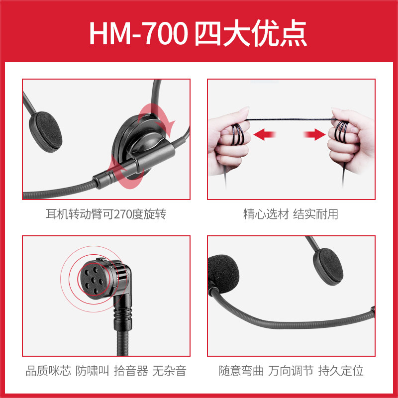 Takstar HM-700 Small Bee Loudspeaker headset Tour Guide promotional headset microphone curved plug