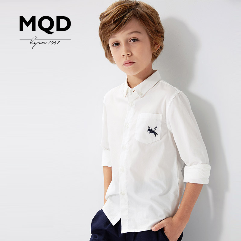MQD Boy Clothing Boy White Shirt Spring Autumn Clothing 2022 New Pure Cotton Korean Version Children Pure Color Long Sleeve Shirt Tide