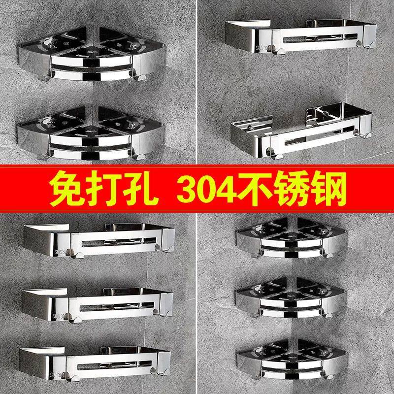 Punch-free 304 stainless steel powder room tripod toilet rack toilet bathroom corner rack wall hanging