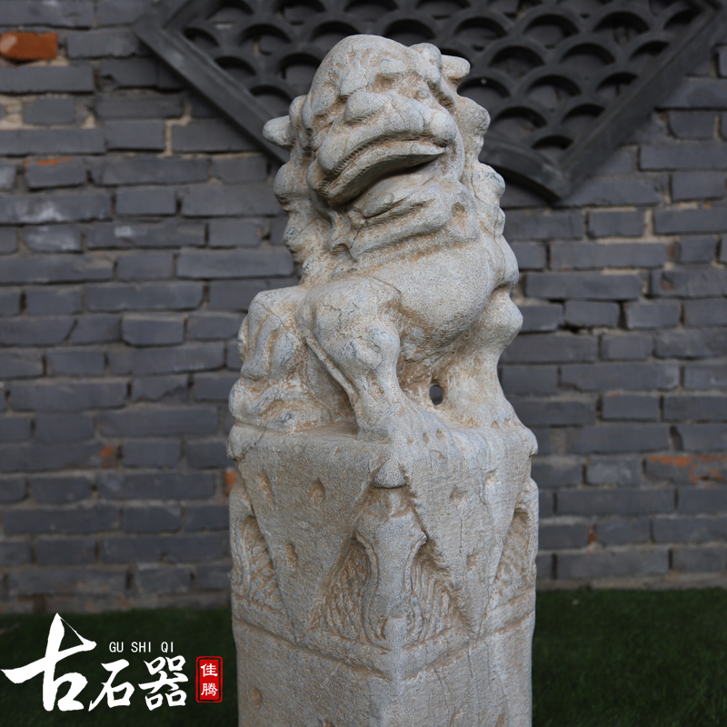 Tethered horse pile Chinese imitation ancient made of old stone Lion green stone tethered horse pile The Kirin Four Divine Beast Chinese Courtyard Pendulum