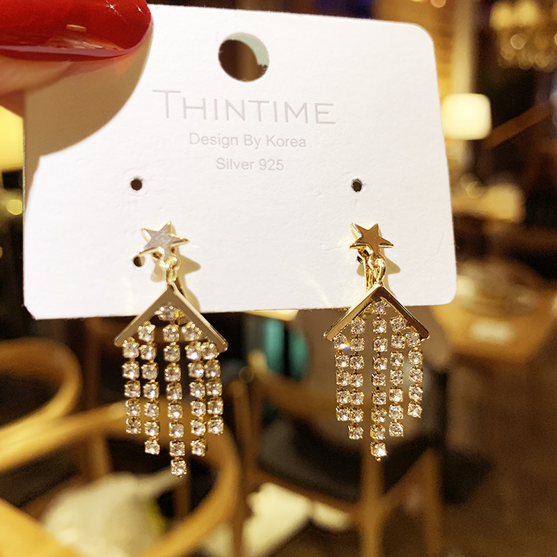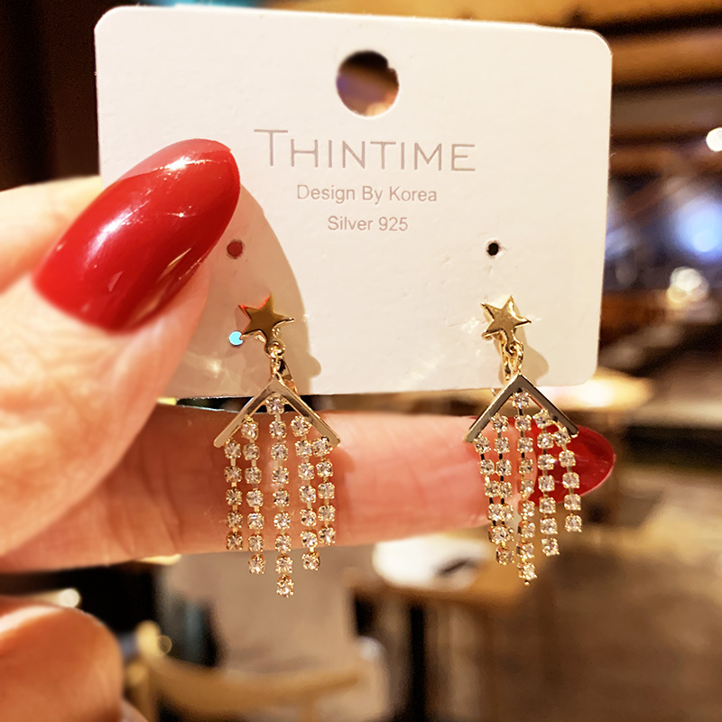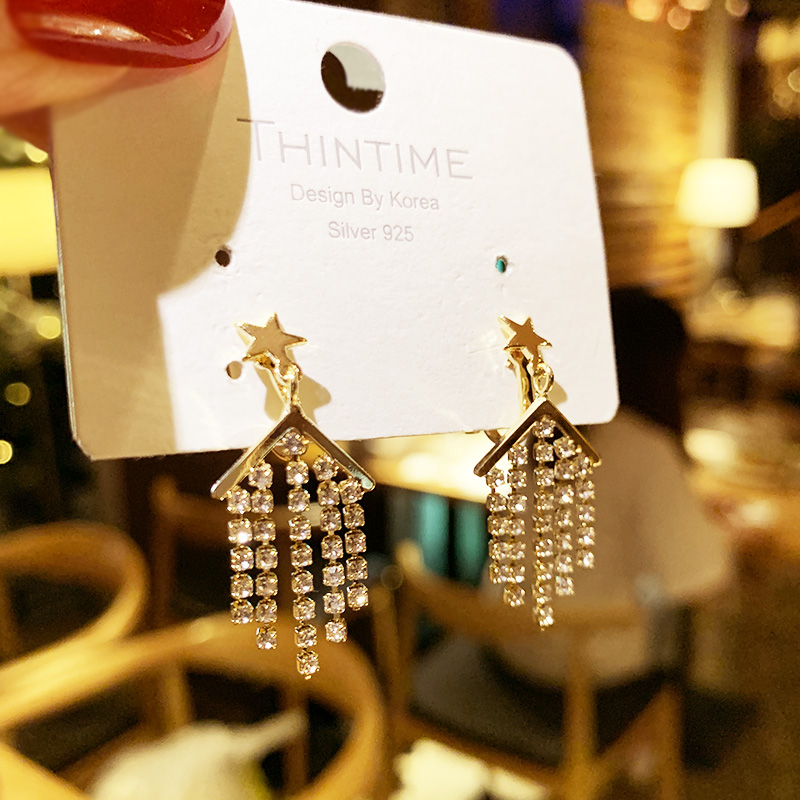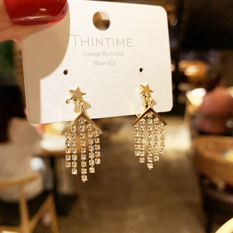 South Korea Dongdaemun Stars Flow Suearrings Are 925 Silver Needle Ear Pints Female Personality Fashion Earrings Without Ear Clip