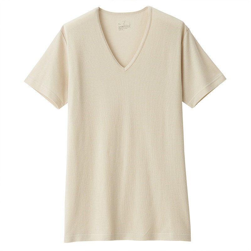 No Inprint Good Pink MUJI male style cotton cool and cool V collar short sleeve T-shirt