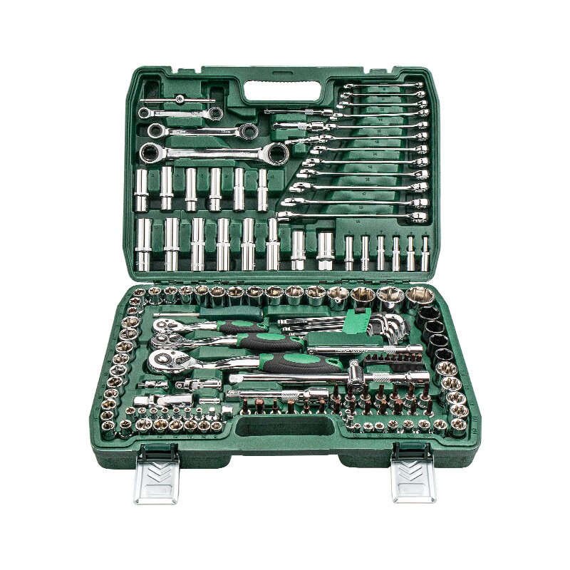 Industrial 72-tooth 1 4 3 8 1 2 curved handle ratchet wrench 150 piece set
