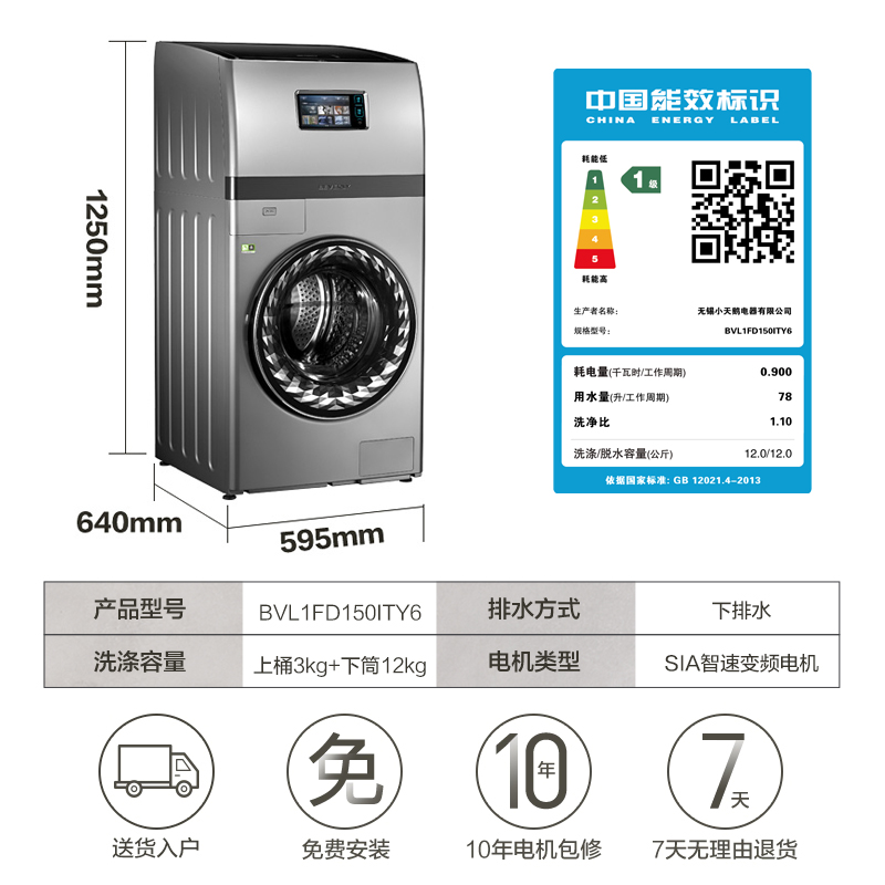 Little Swan Beverly 15kg double-layer washing machine drum automatic household washing and drying BVL1FD150ITY6