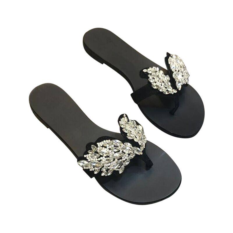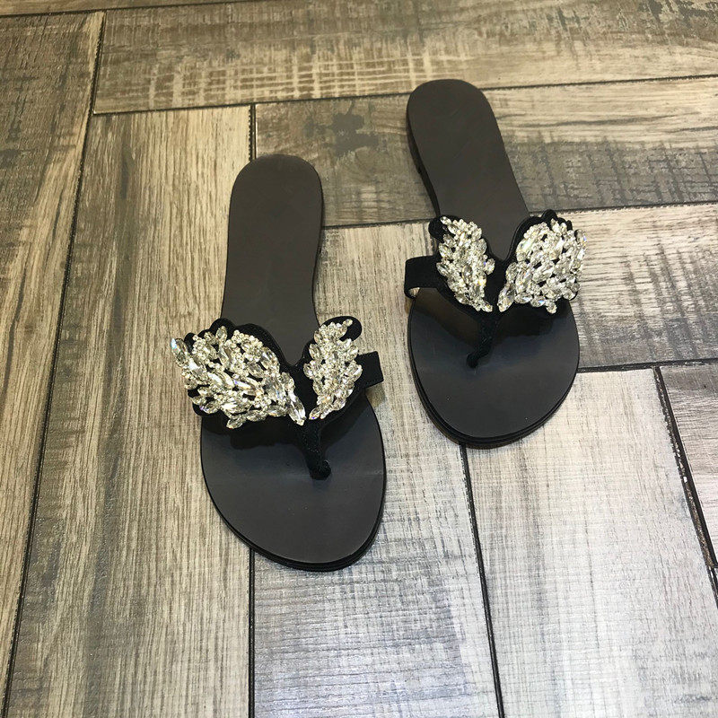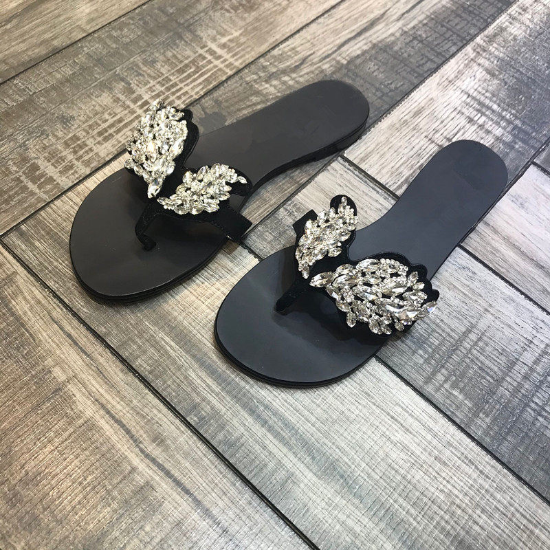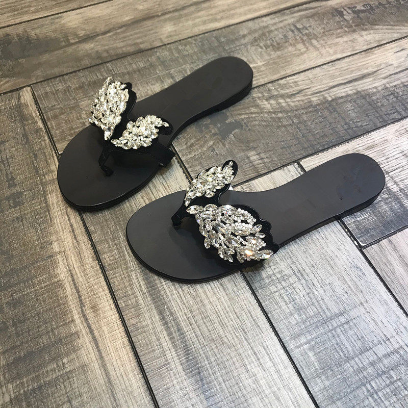 2022 European station summer new rhinestone flat flip-flops outer wear fashion angle sandals sandals women's shoes trend