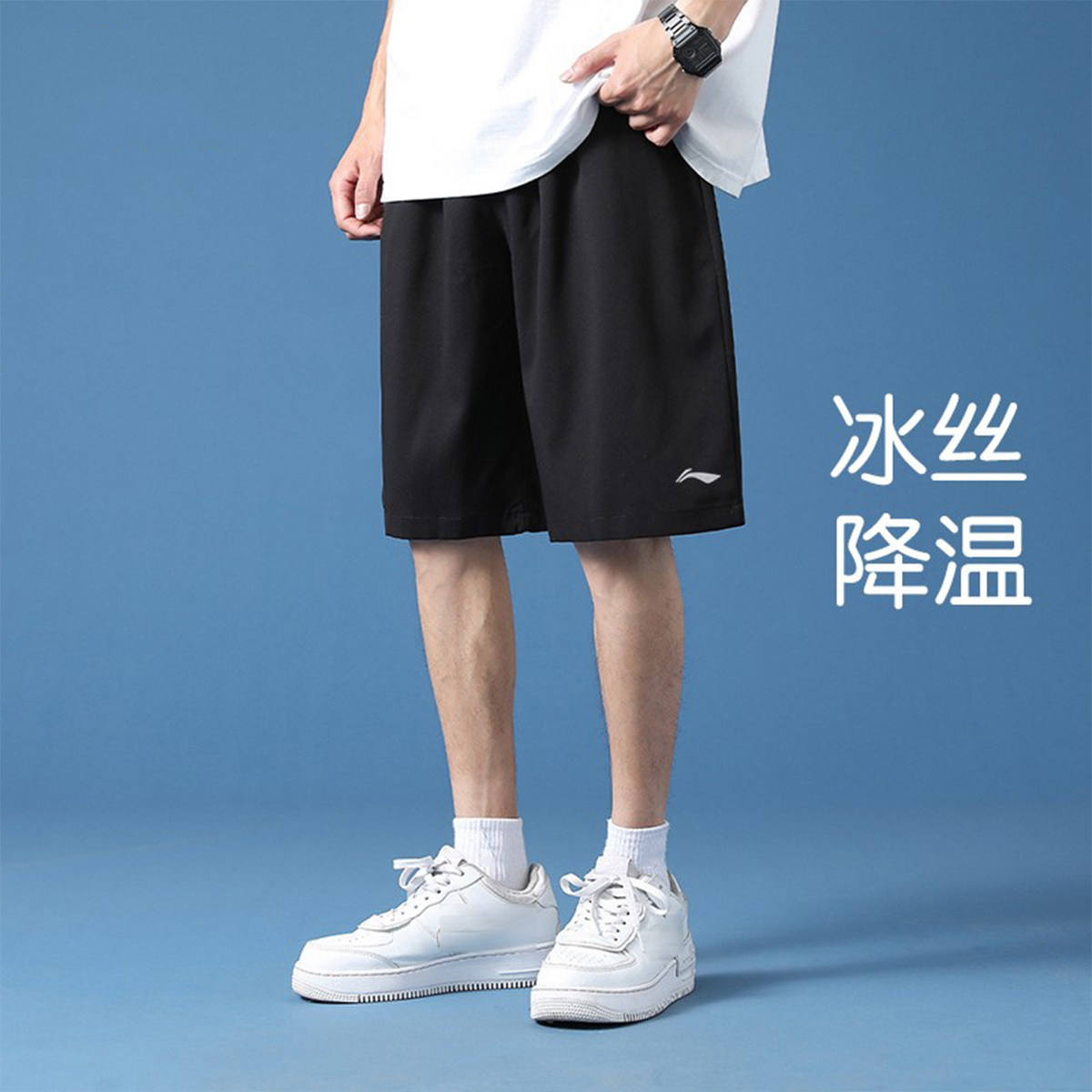 Li Ning Shorts Five Software Male 2023 Summer Ice Wire Dry Breakfast Light Running Training Fitness Pants Men