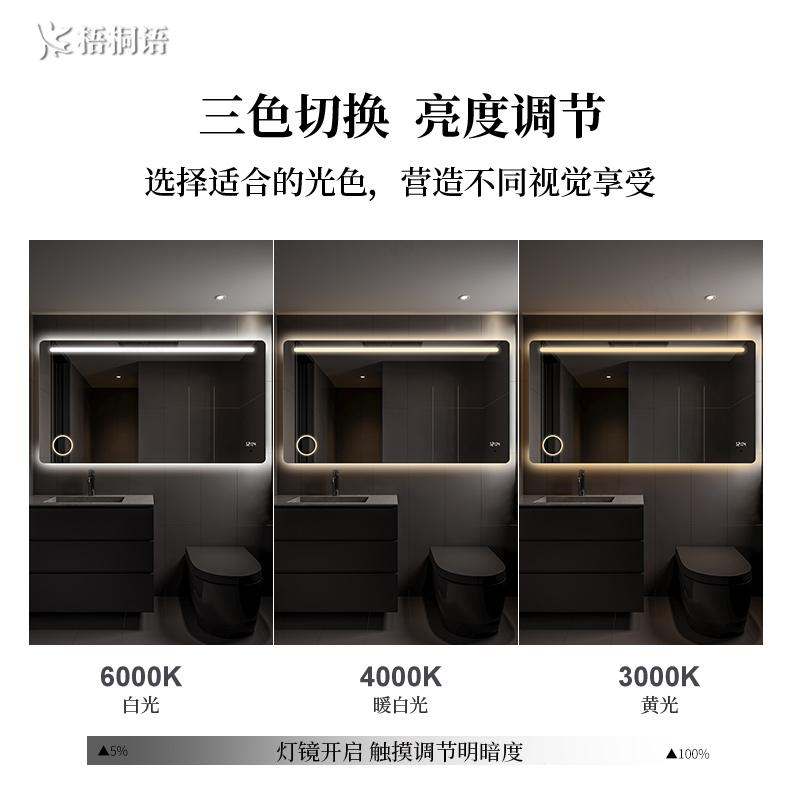 led mirror dressing room bathroom mirror wall-mounted smart mirror ultra-white anti-fog toilet mirror with light makeup mirror