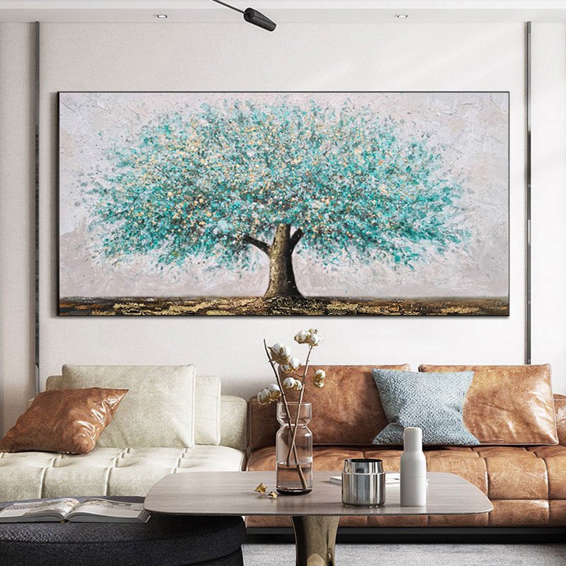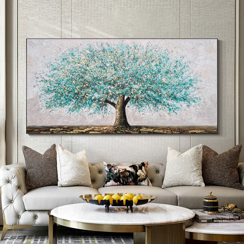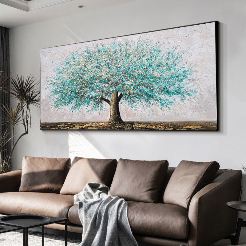 Hand painted oil painting horizontal version hairstyle tree living room sofa background wall hanging painting light lavish villa handmade decoration painting rocking money tree