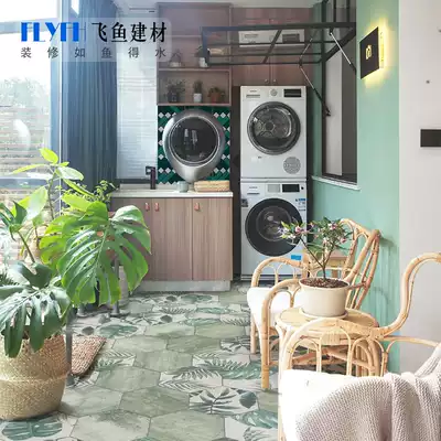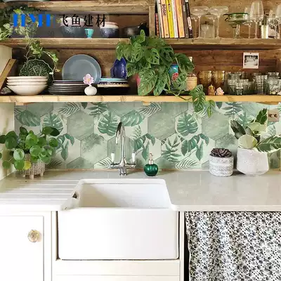 Nordic dark green retro hexagonal tiles art hexagonal background wall powder room kitchen bathroom non-slip floor tiles