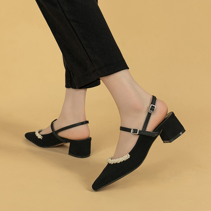 Women's shoes 2021 new spring models Hepburn Mary Jane shoes woman retro pearl in heel with coarse heel style little high heel single shoes