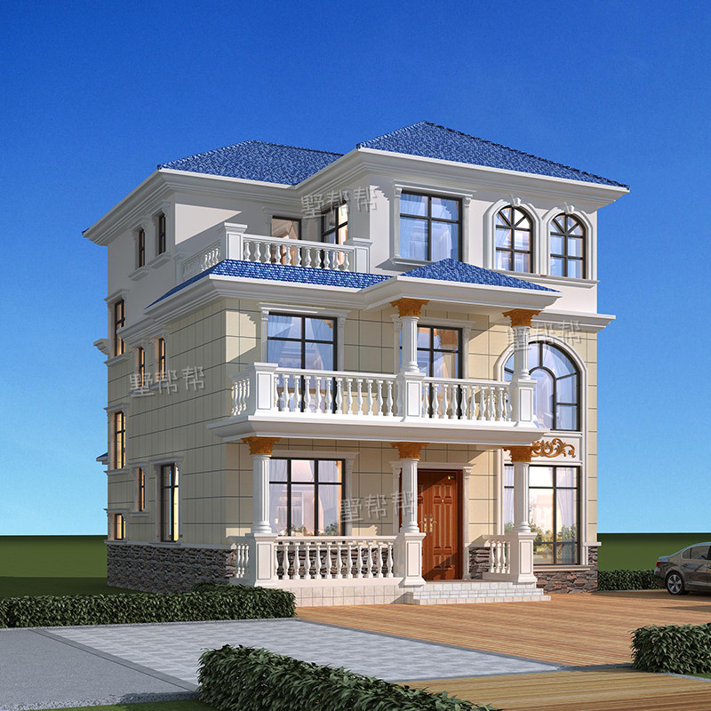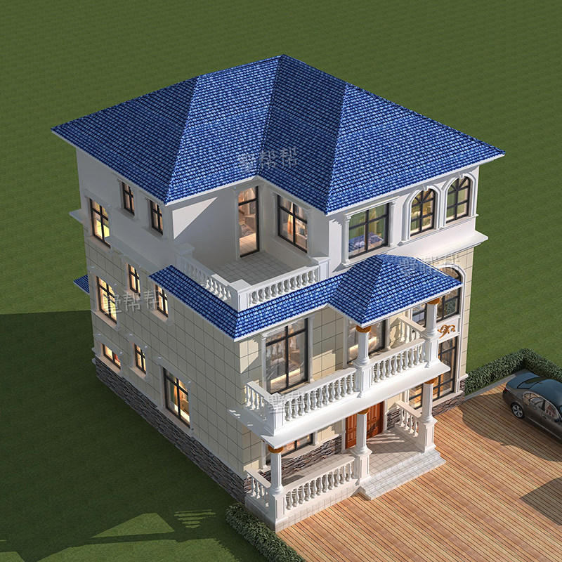 New rural two-and-a-half-story European villa design drawings Rural three-story self-built house full set of sample renderings