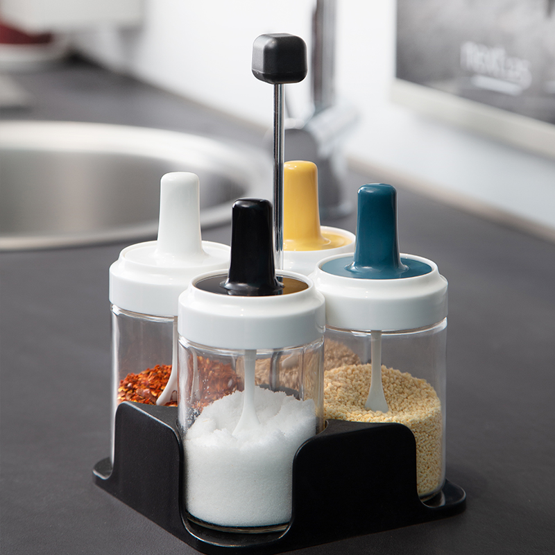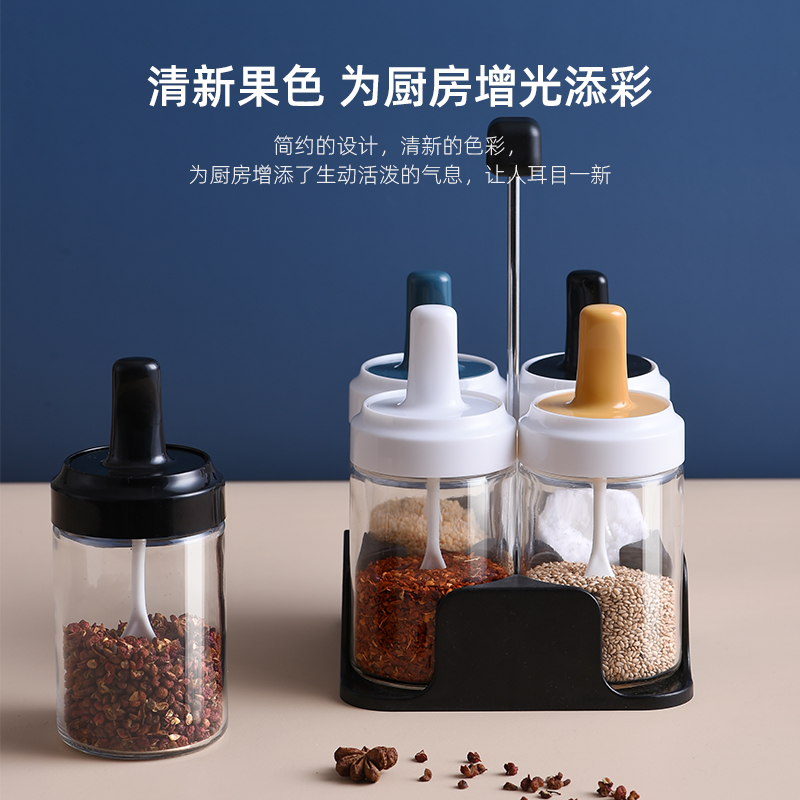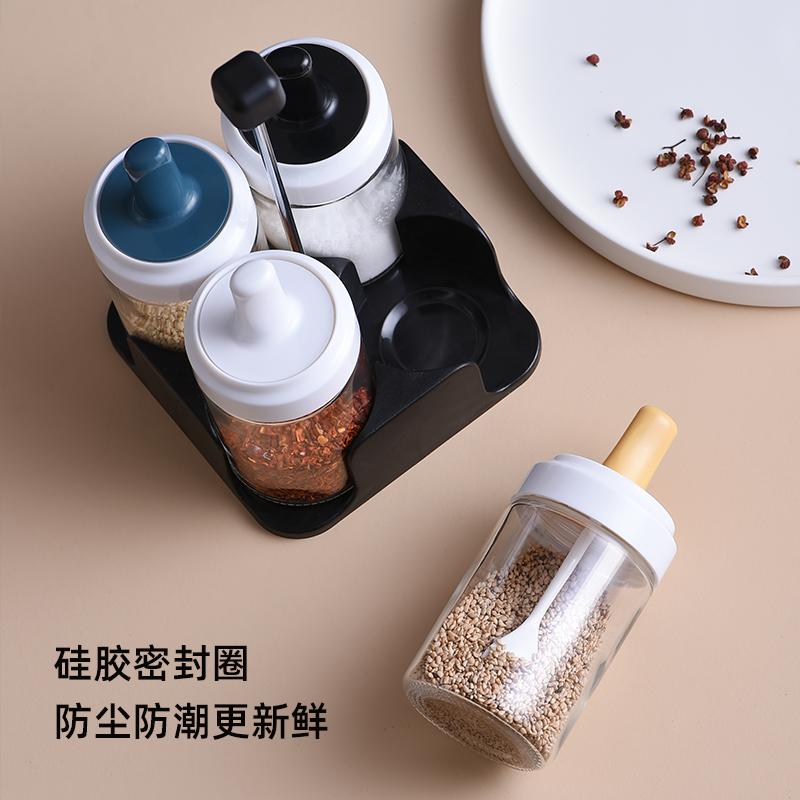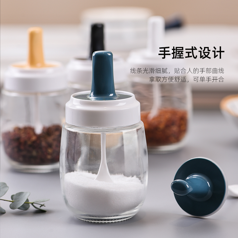 Seasoning jar glass salt jar spoon cover one seasoning jar household seasoning bottle sugar jar salt monosodium glutamate seasoning box set