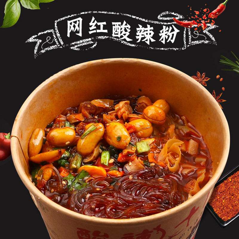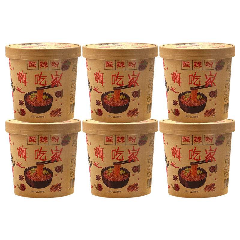(whole box 6 buckets) Acid hot powder keg Bucket Clothing Nets Red Chongqing Sour Hot Pink Pasta Instant Fans