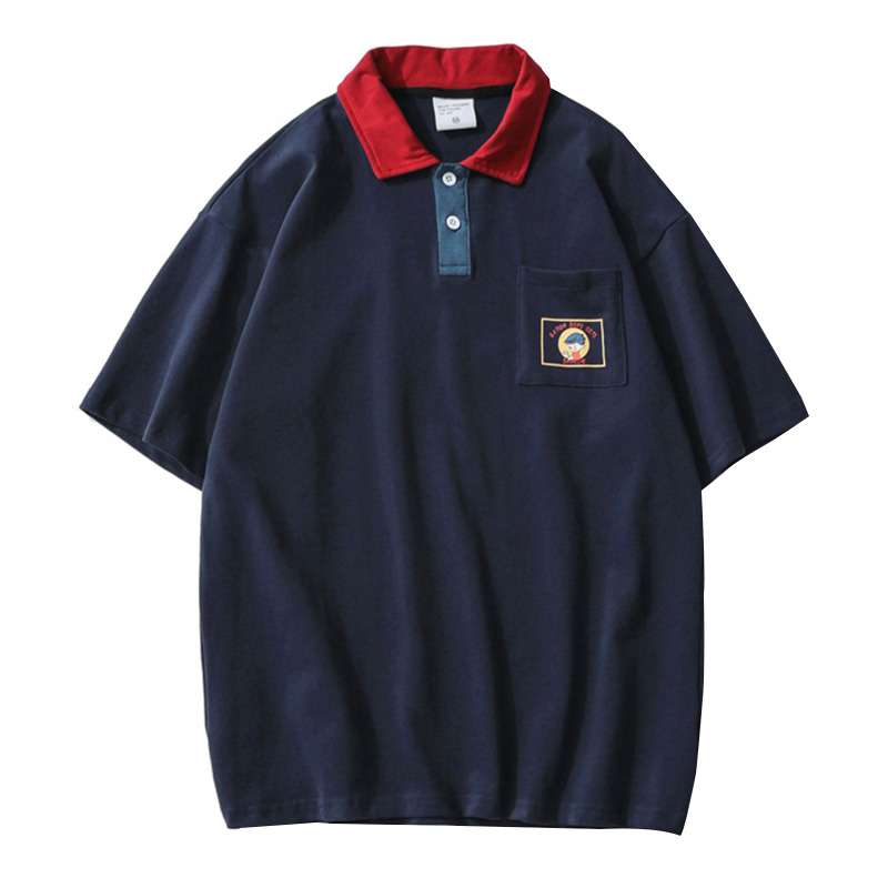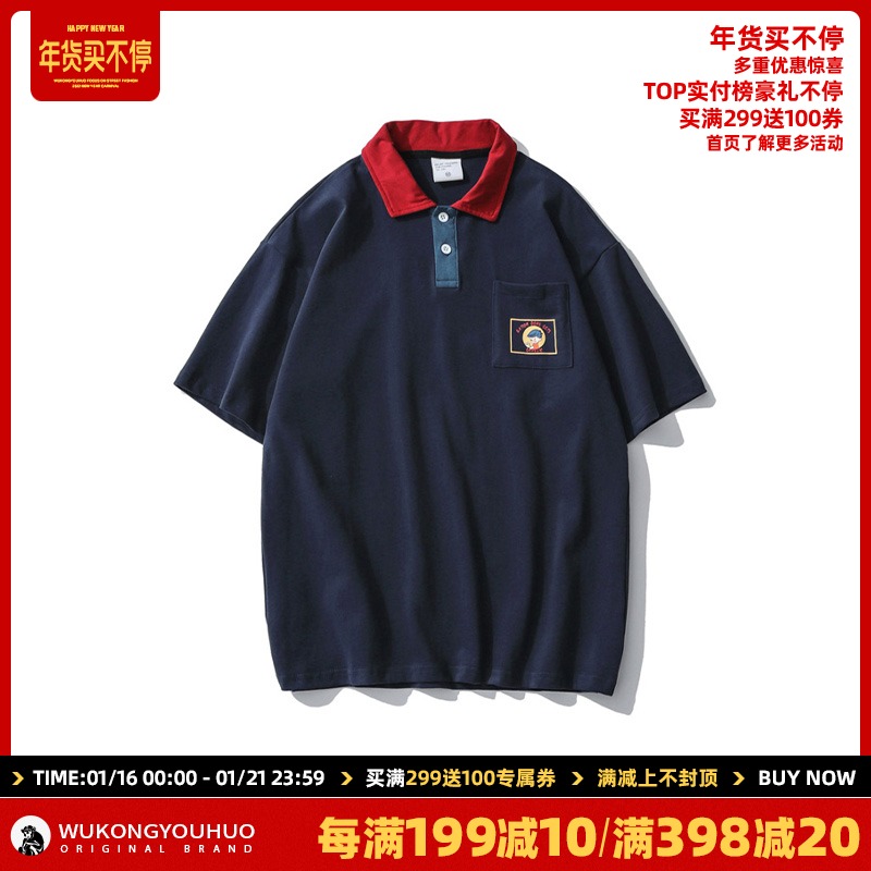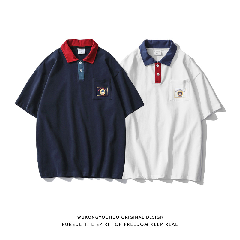 Wukong has goods, Japanese simple short-sleeved polo shirt men's Tide brand loose couple leisure Joker lapel half sleeve t-shirt