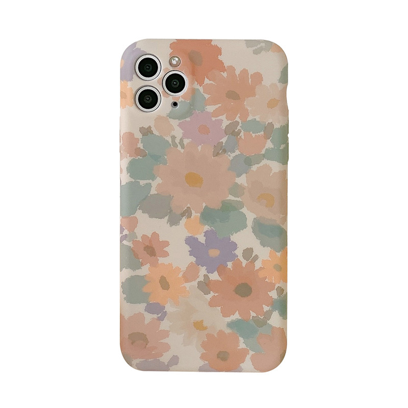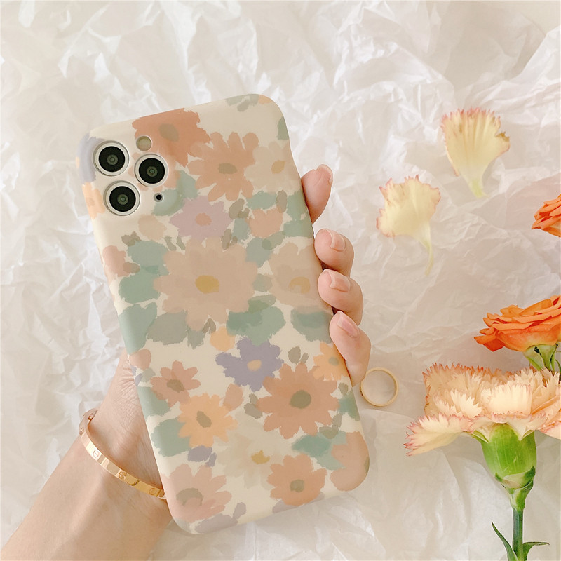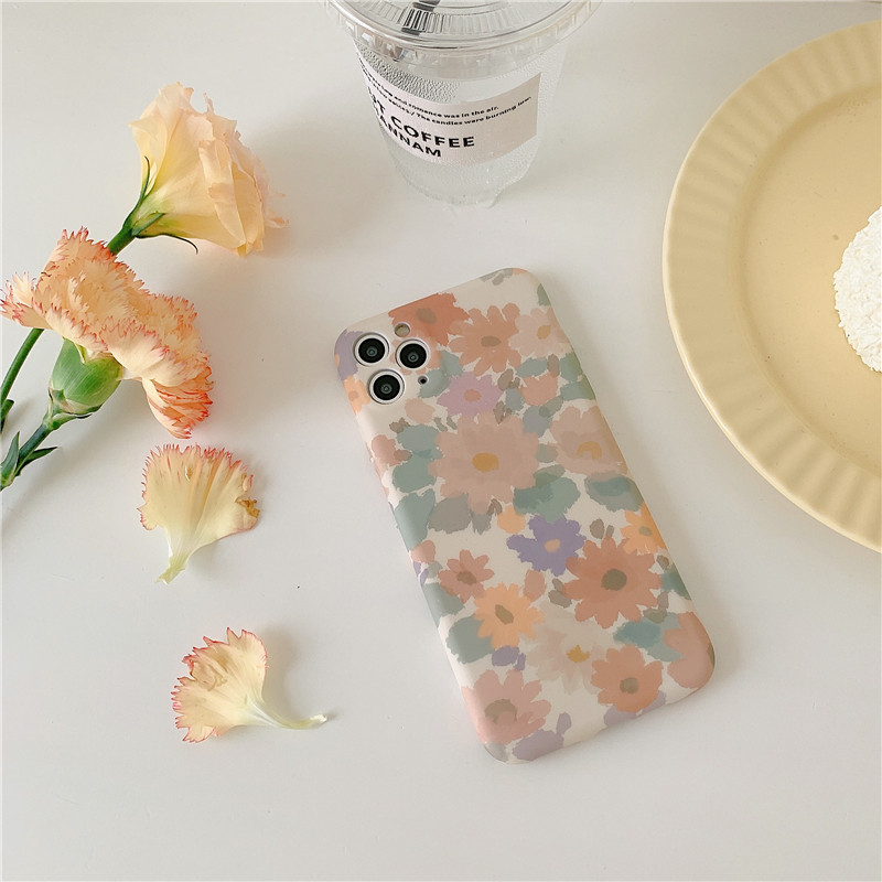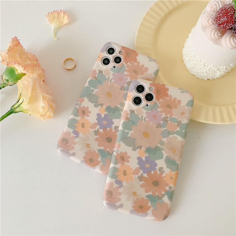 Retro Watercolor Daisy Flowers Apply 11Pro Max Apple X XS XR SE Phone protection shell iPhone7p Women 8plus day Korea ins liquid silicone full