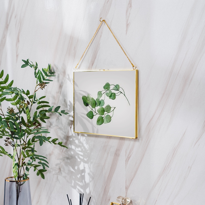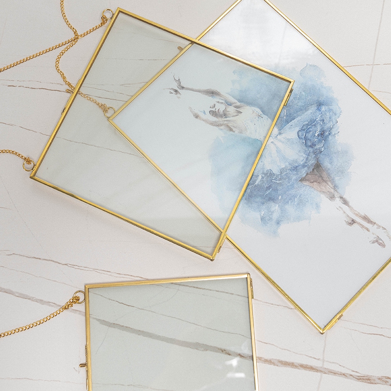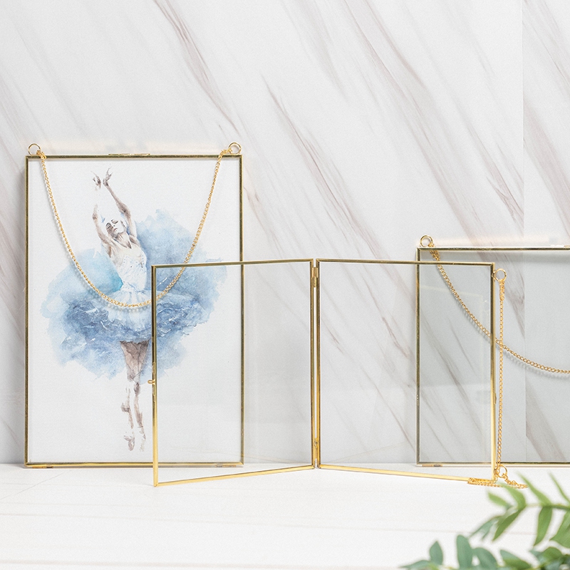 U Home|Brass glass folding photo frame High-grade gold photo frame wall hanging light luxury Nordic ins style