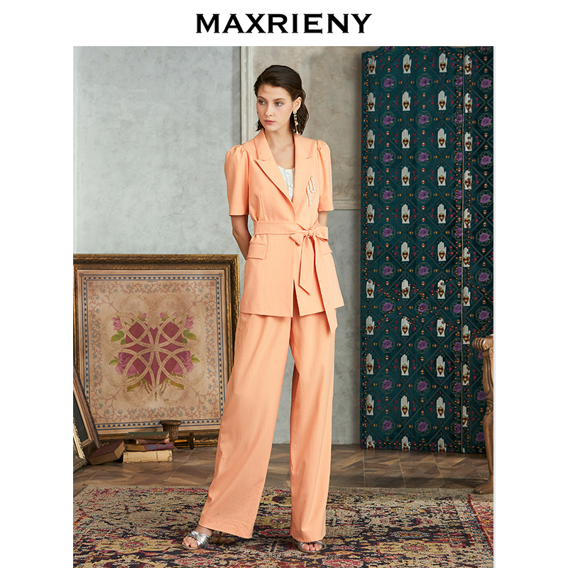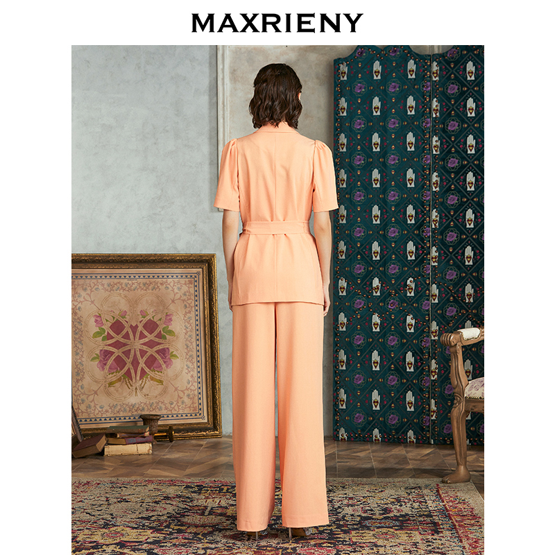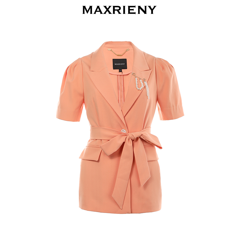 MAXRIENY2020 Summer new retro short sleeves Jacket Woman Summer Pink Orange Suit Collar Small Crowd Design Thin