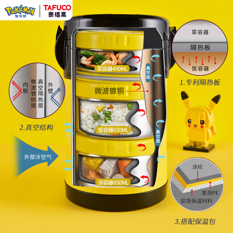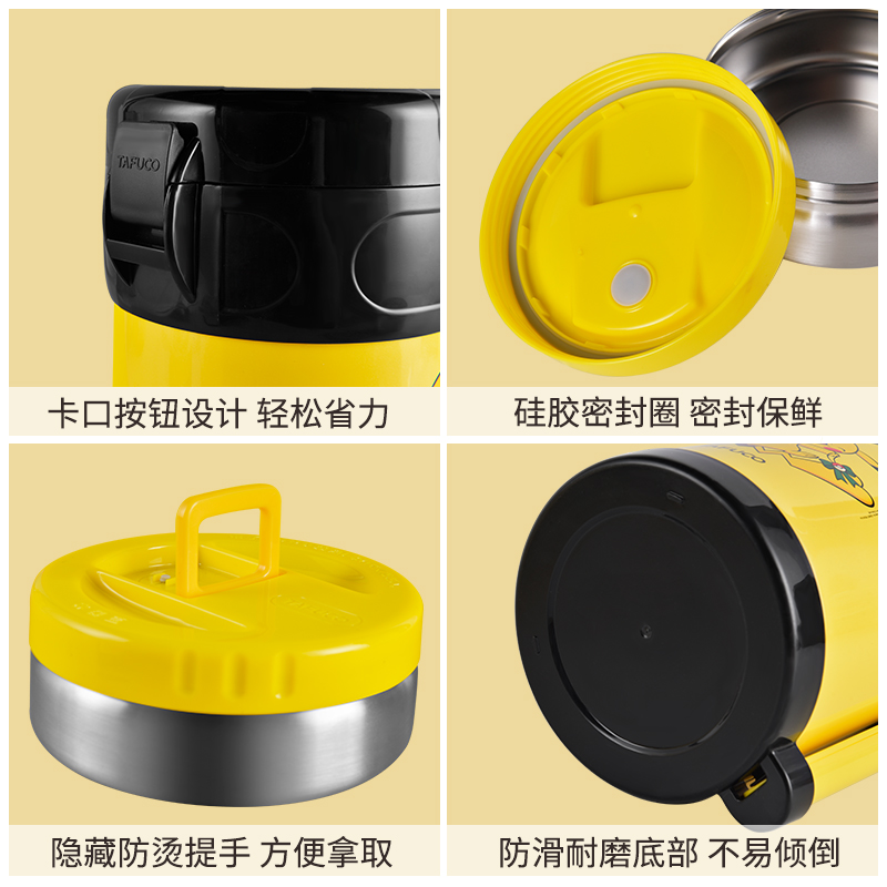Japan Taifu high stainless steel insulation lunch box Pokémon Pikachu insulation bucket student large-capacity lunch box