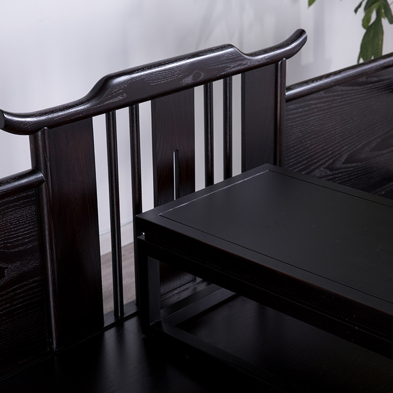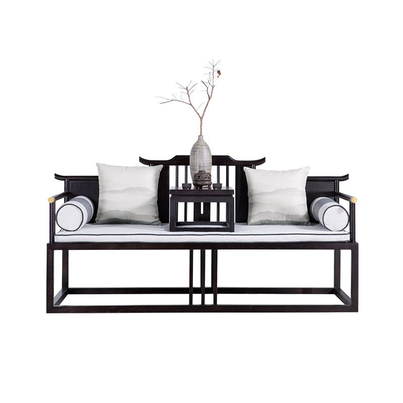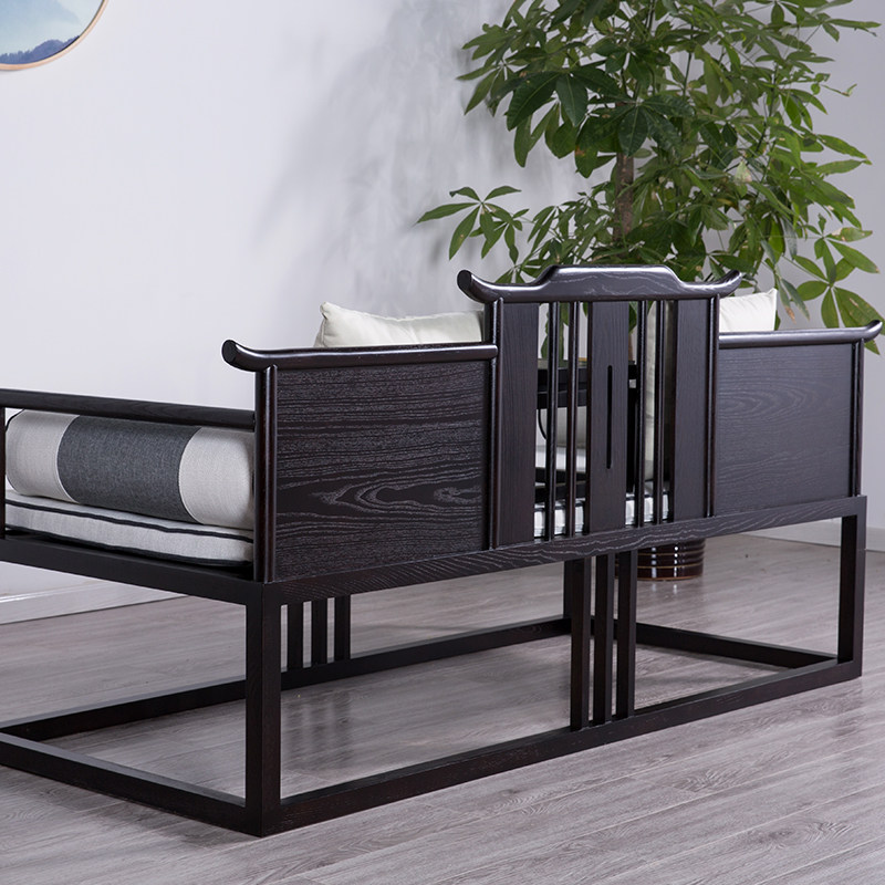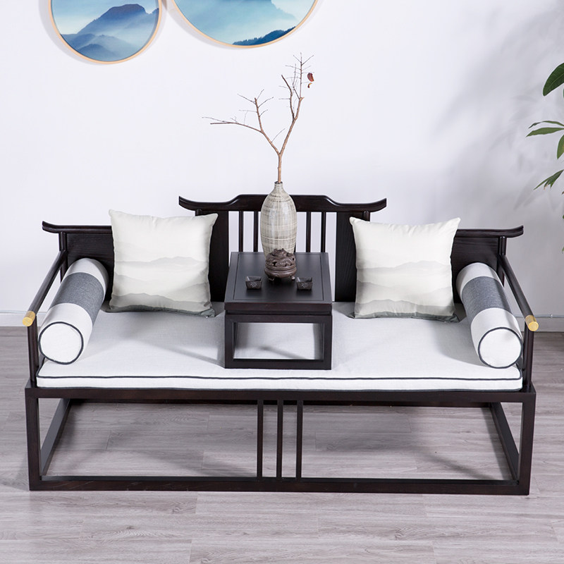 New Chinese Arhat Bed Solid Wood Modern Chinese Arhat Couch Simple New Classical Sofa Fabric Hotel B&B Furniture